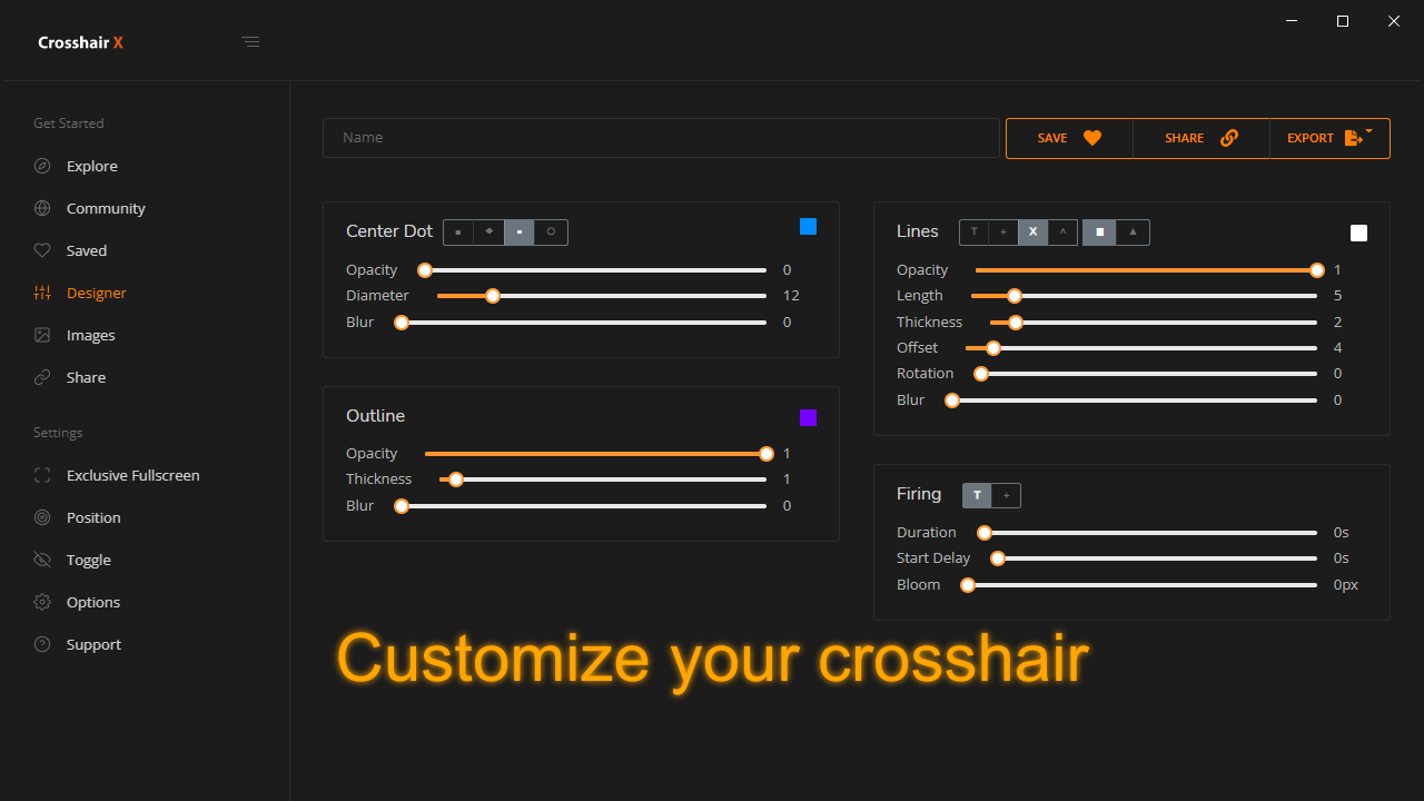 • Designer: Easy to use sliders let you adjust all features of your crosshair