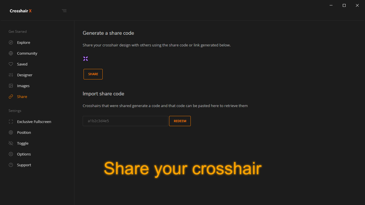 • Export: Save your crosshair to your computer as a .PNG or .SVG