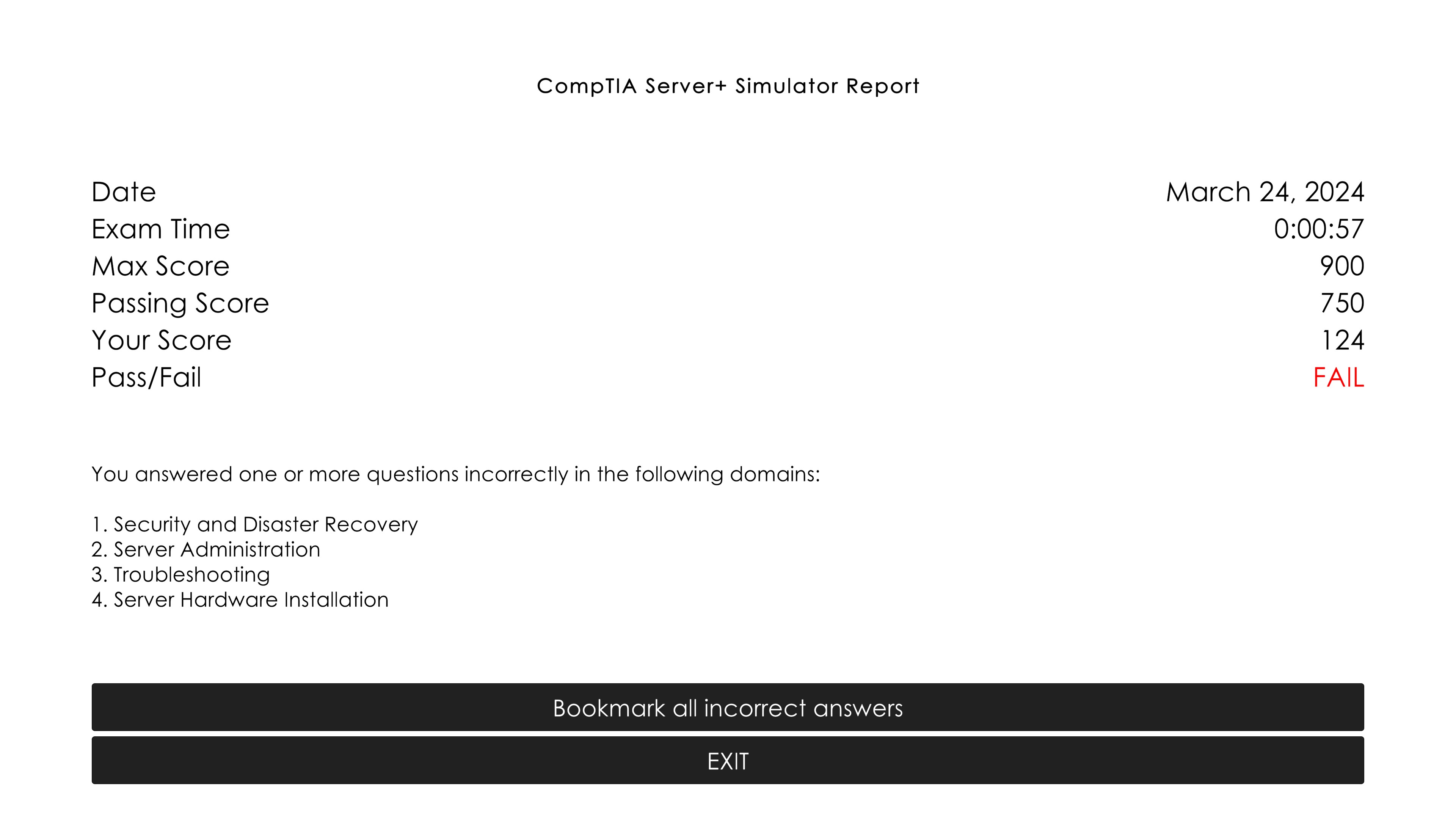 The simulator mode is created to replicate the actual CompTIA Server+ exam format to help you go through a mock exam prior to your actual exam.
