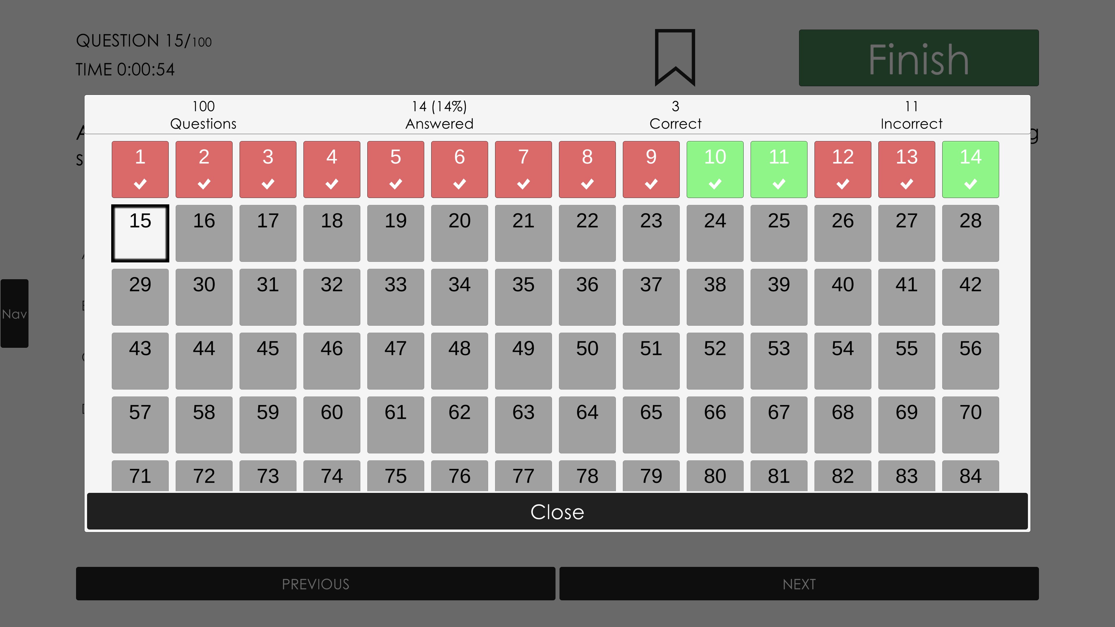 Allows you to quickly start a 5, 10, 20, 40, 50 question exam with randomized questions.