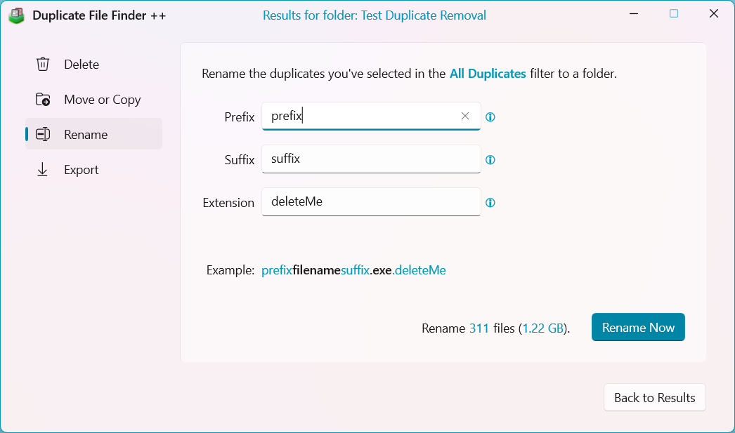 • New: Rename duplicates with prefix, suffix, and extensions