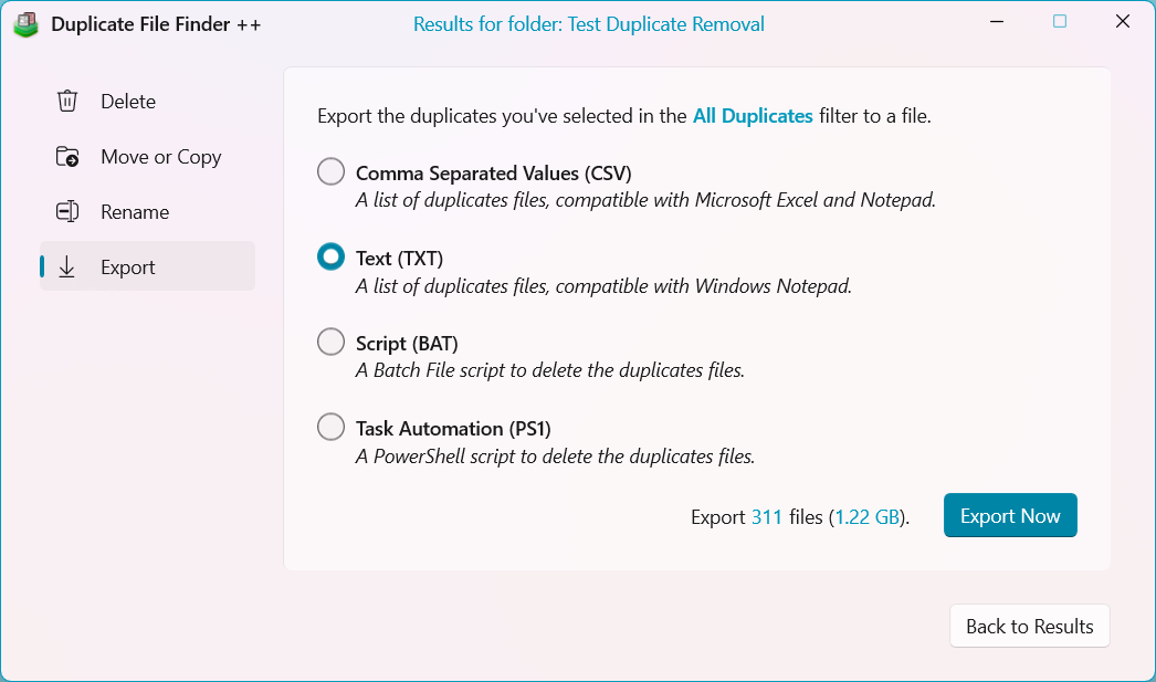 • New: Export duplicates to csv and script files
