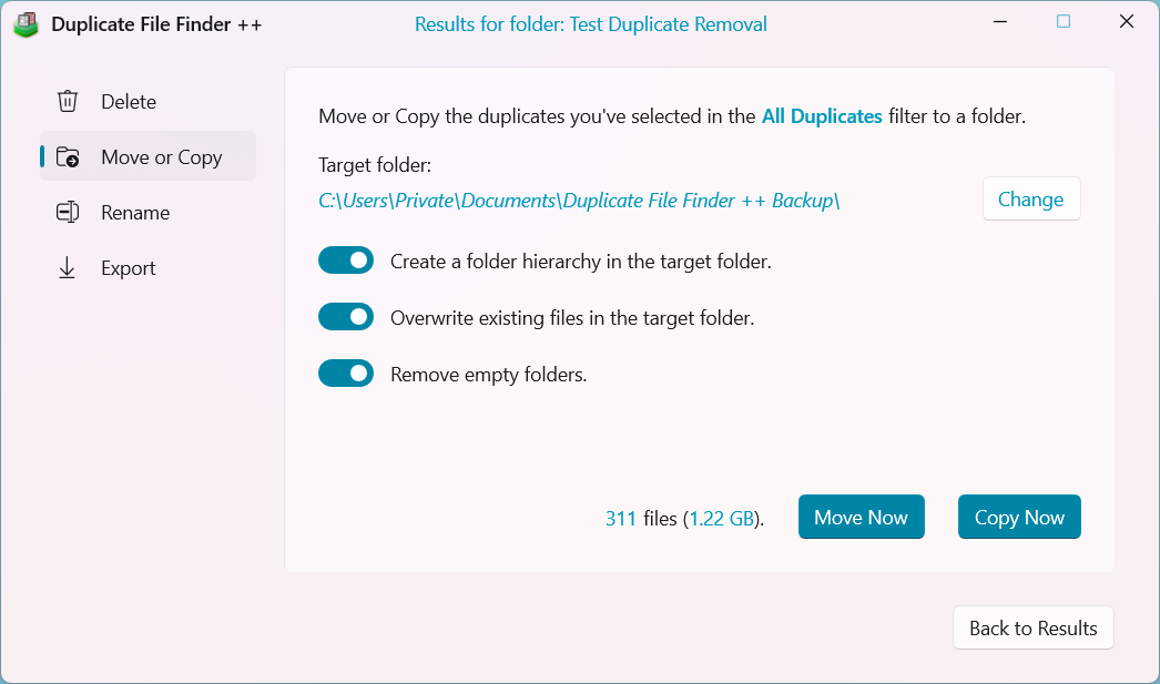 • New: Move or Copy duplicates to Folder