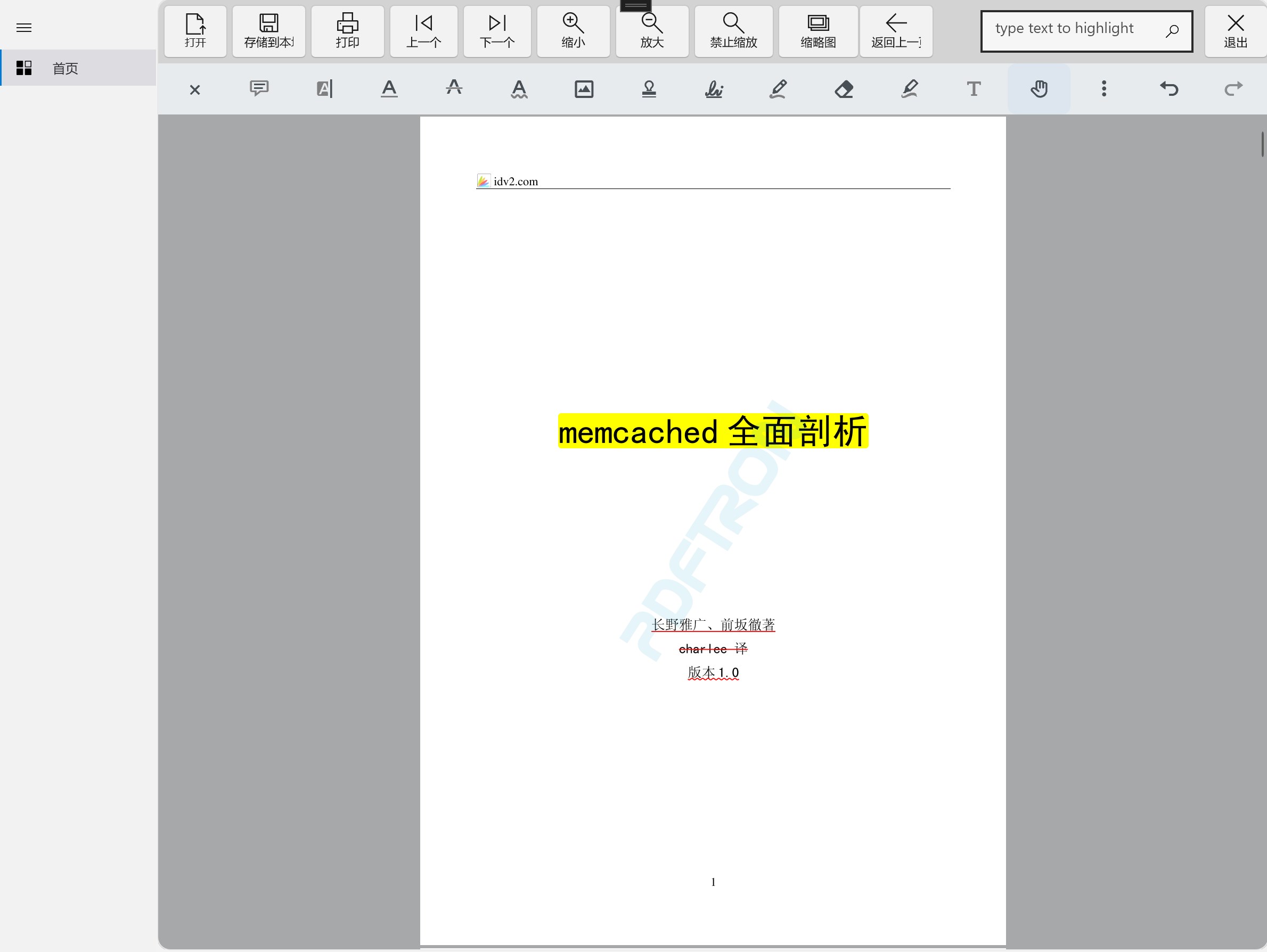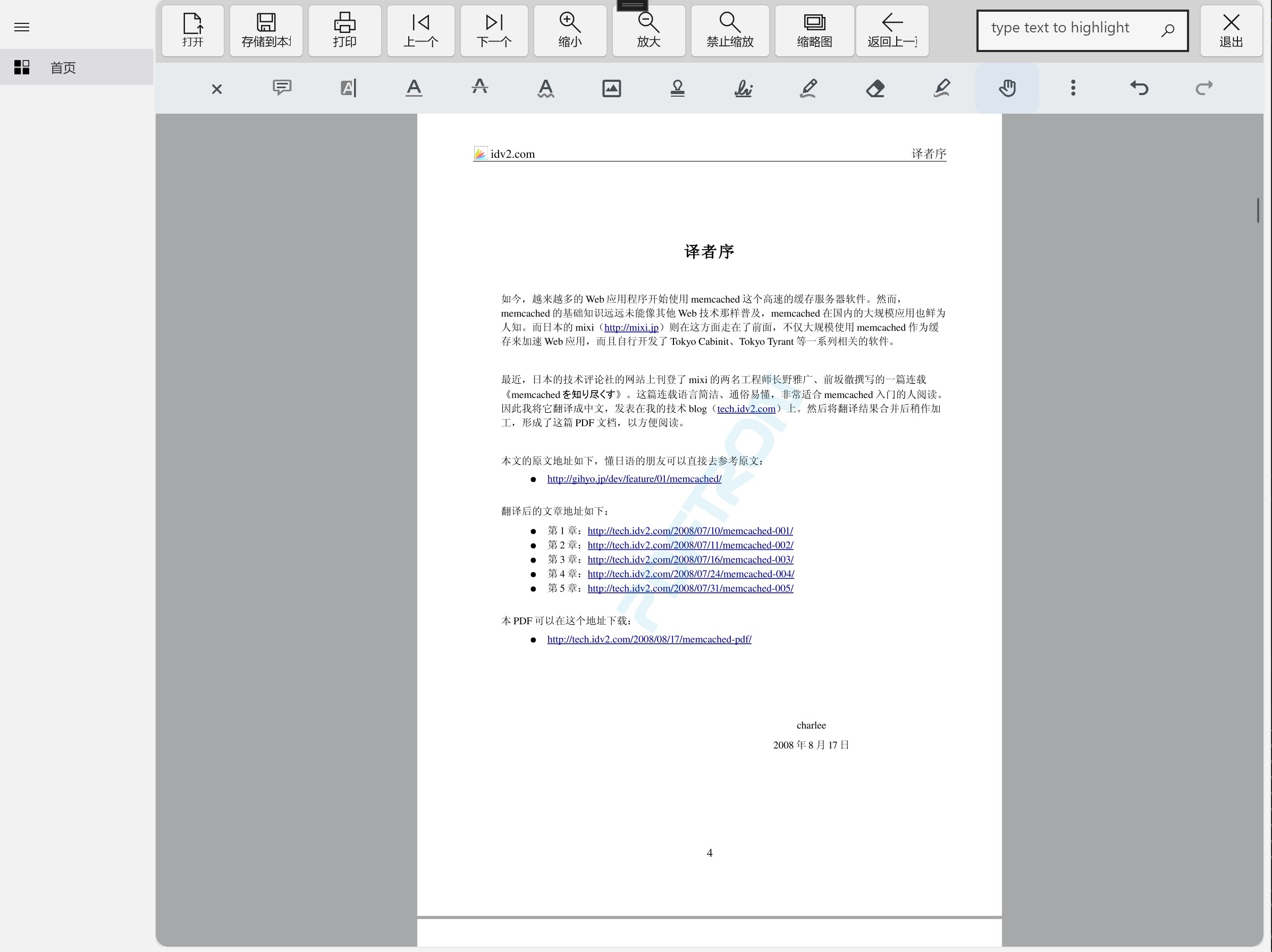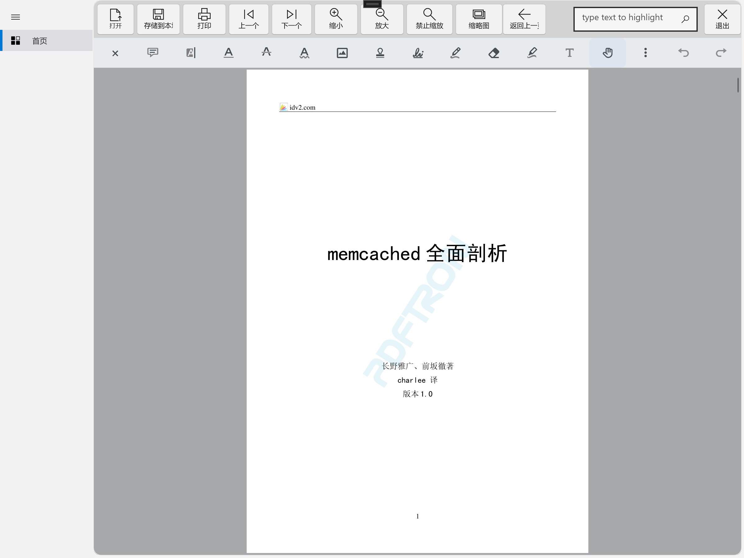 • search for text, zoom in, zoom out and presentation modes.