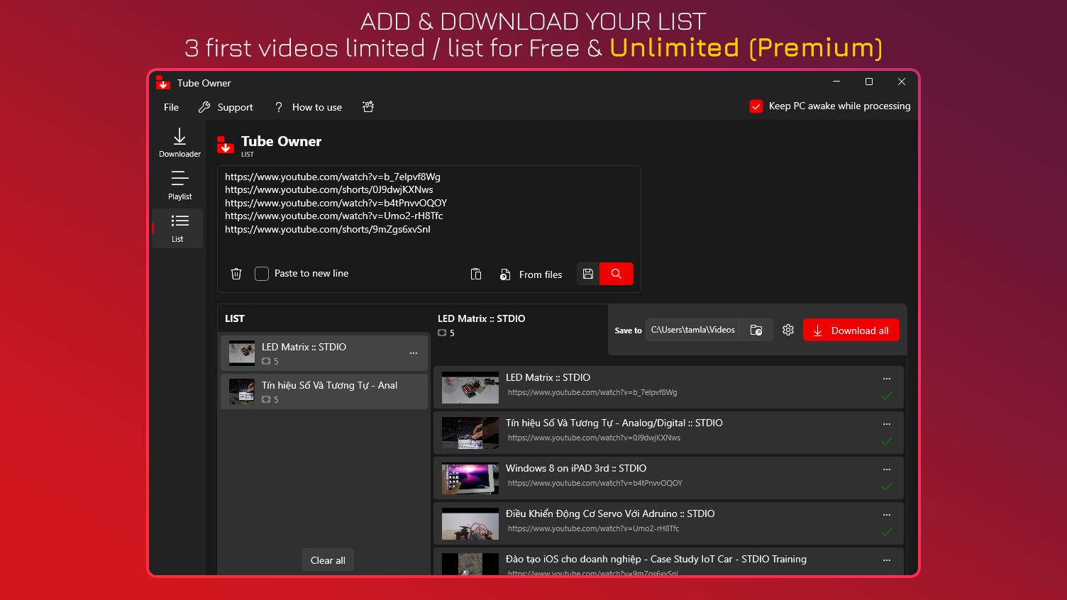 ⭐ Custom LIST: support unlimited in premium version and 3 first videos limit in free version.