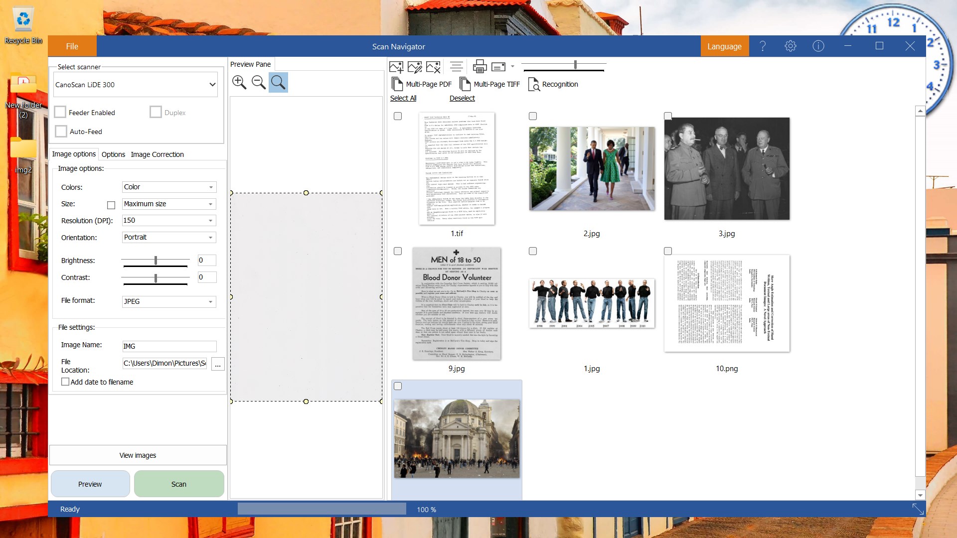 You can use the application to create multi-page PDF documents as well as TIFF files.