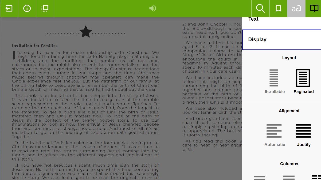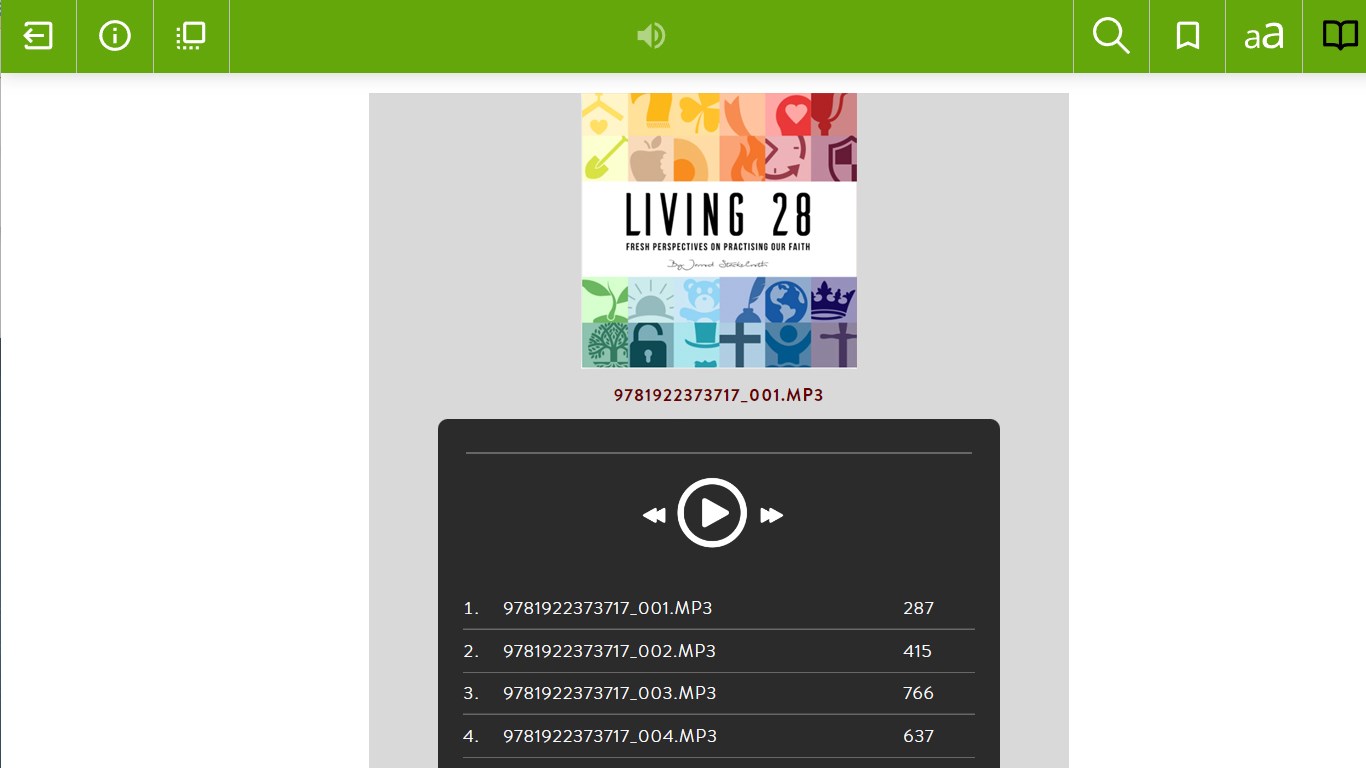 Audiobooks - download and store on your PCAudiobooks - play/pause and skip forward/backwardAudiobooks - listen in the background whilst browsing other appseBooks - download and store on your PCeBooks - page book-marking, opening the title at the right place when you pick upeBooks - change the font size, font face (including a dyslexic-friendy font), spacing and layout to suit your needs (depending on the features available in the eBook)eBooks - change the theme coloureBooks - display and navigate from the Table of Contents of the eBookeBooks - create and manage your own bookmarks within the texteBooks - read in either fullscreen view or window view