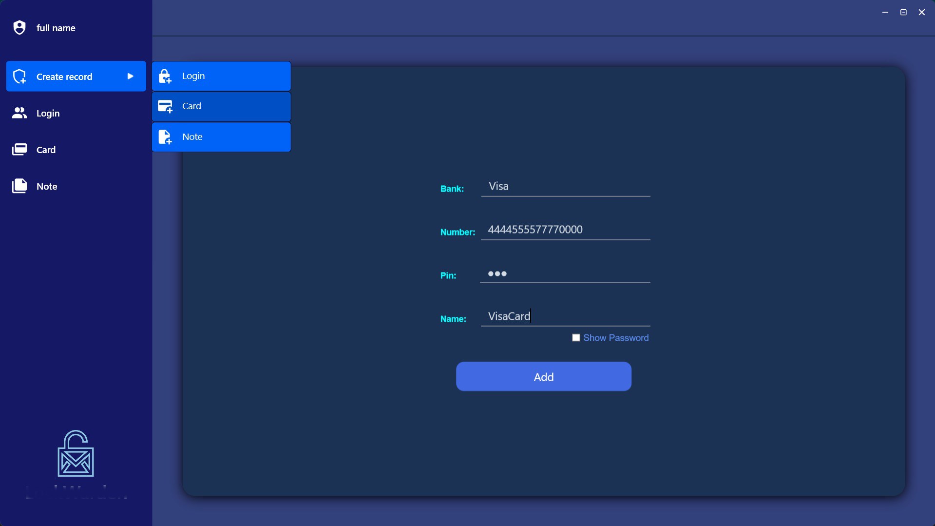 This program is a secure password manager. You can keep your passwords, cards and other information safe with this app. It allows you to store various confidential information logged into certain notes from different sites in the most secure form: stored in your locale storage using high-security encryption algorithms. Complete guarantee that your data will not be tracked.
