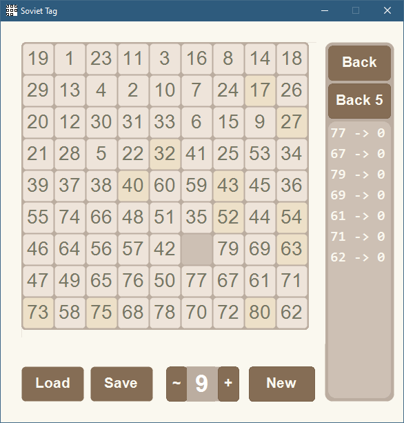 The aim of the game — moving the knuckles on the box, to achieve ordering them by numbers, it is desirable to make as little movement.