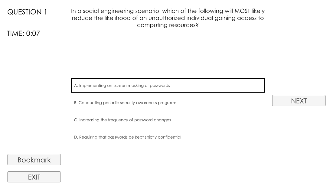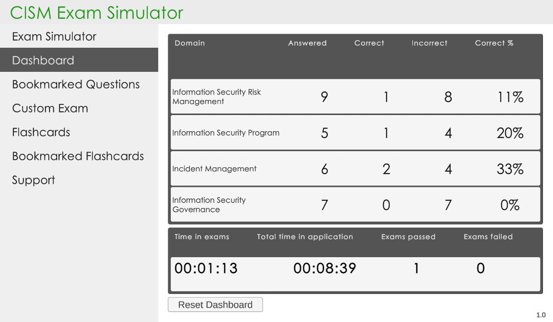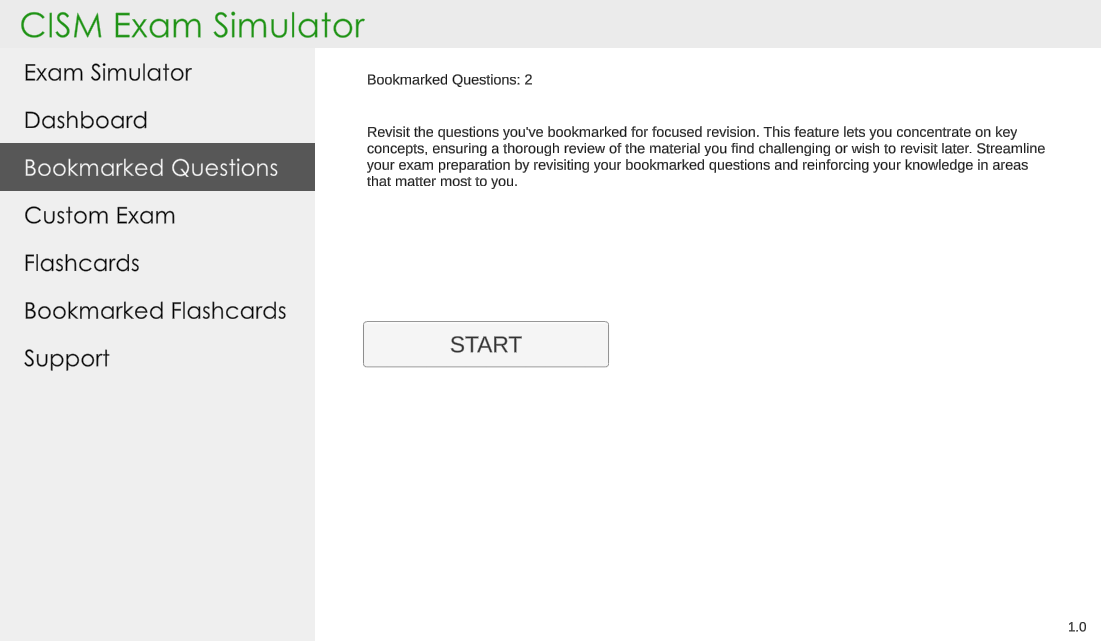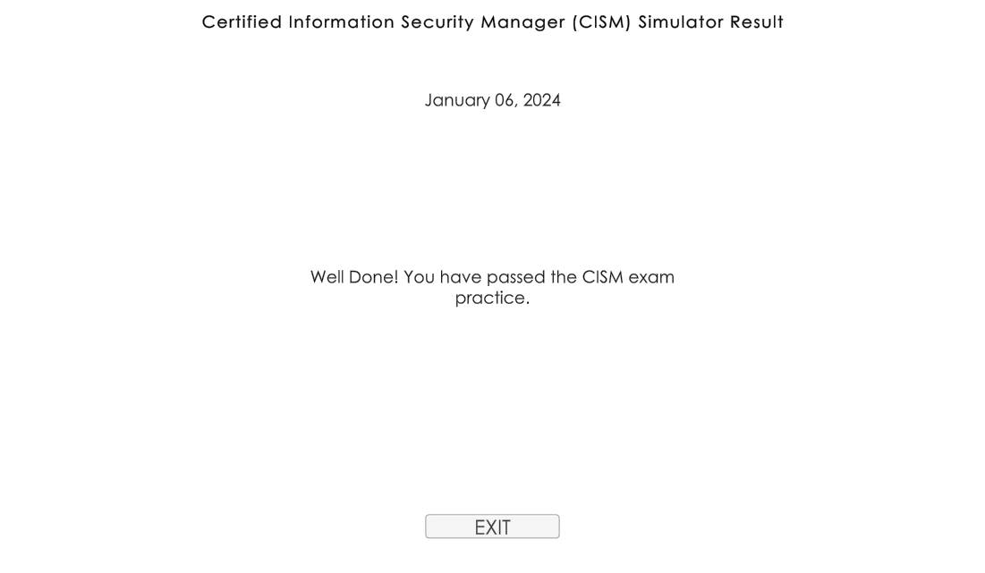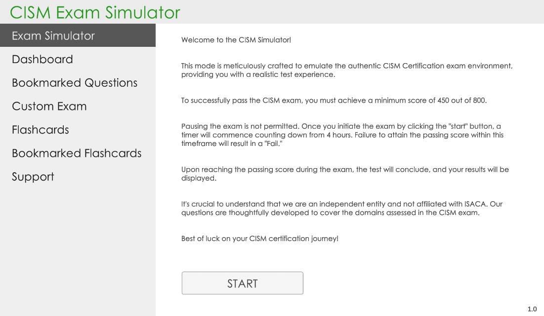 The simulator mode is created to replicate the actual CISM exam rules to help you go through a mock exam prior to your actual exam.