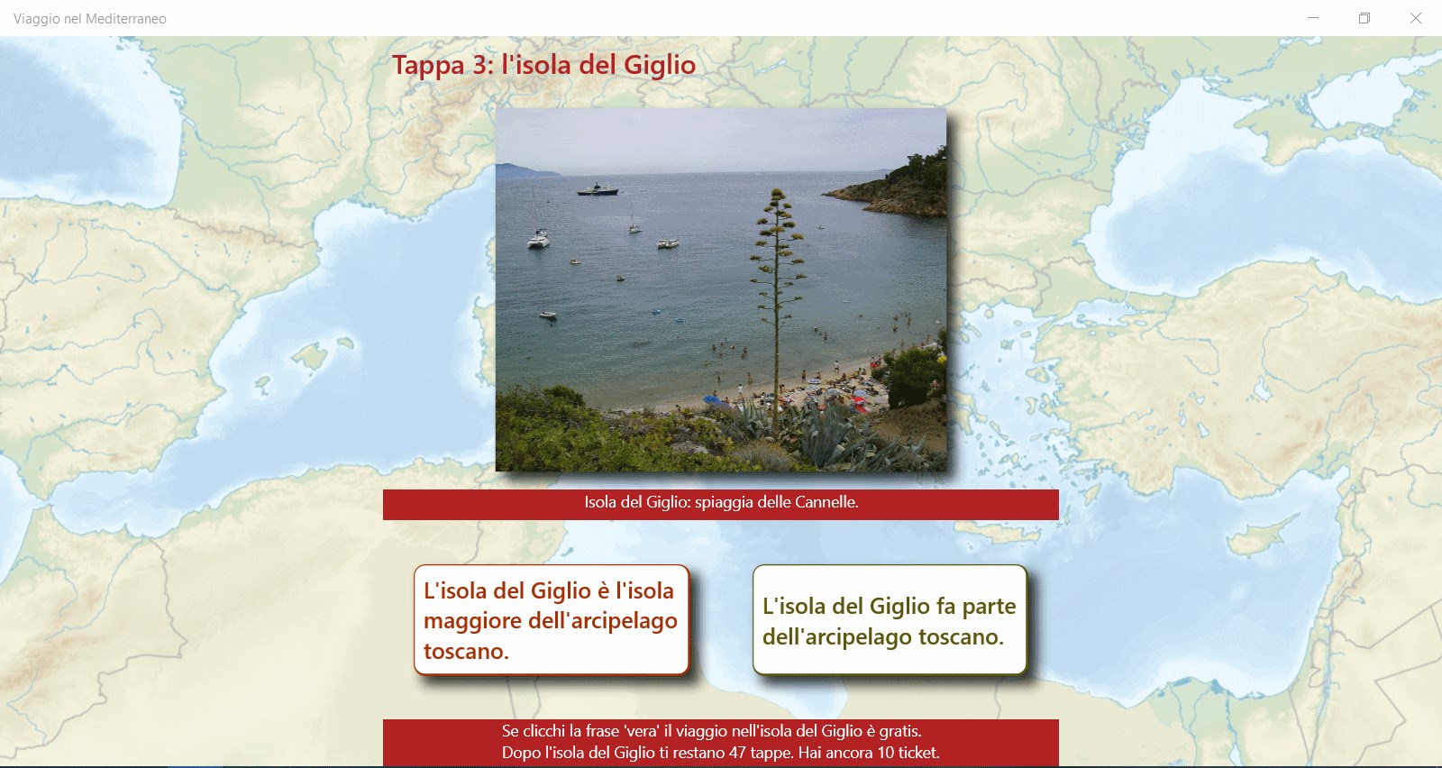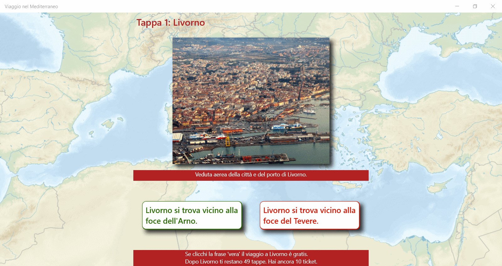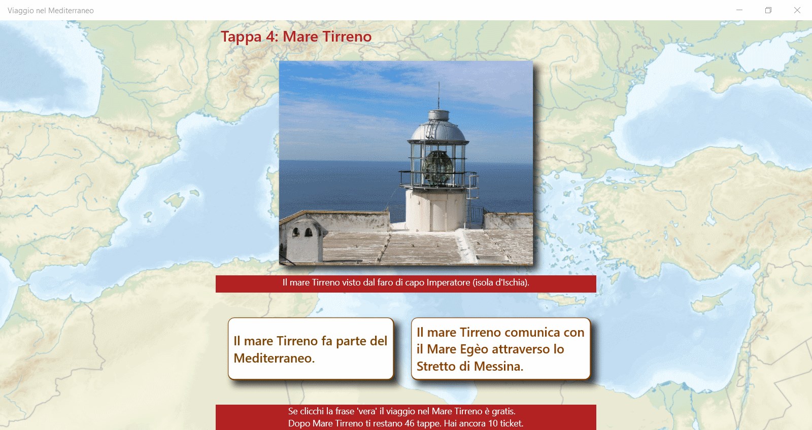 'Viaggio nel Mediterraneo' è un gioco/percorso che tocca 150 località sulle rive del Mare Mediterraneo, da Tangeri a Istanbul, da Venezia a Tripoli.