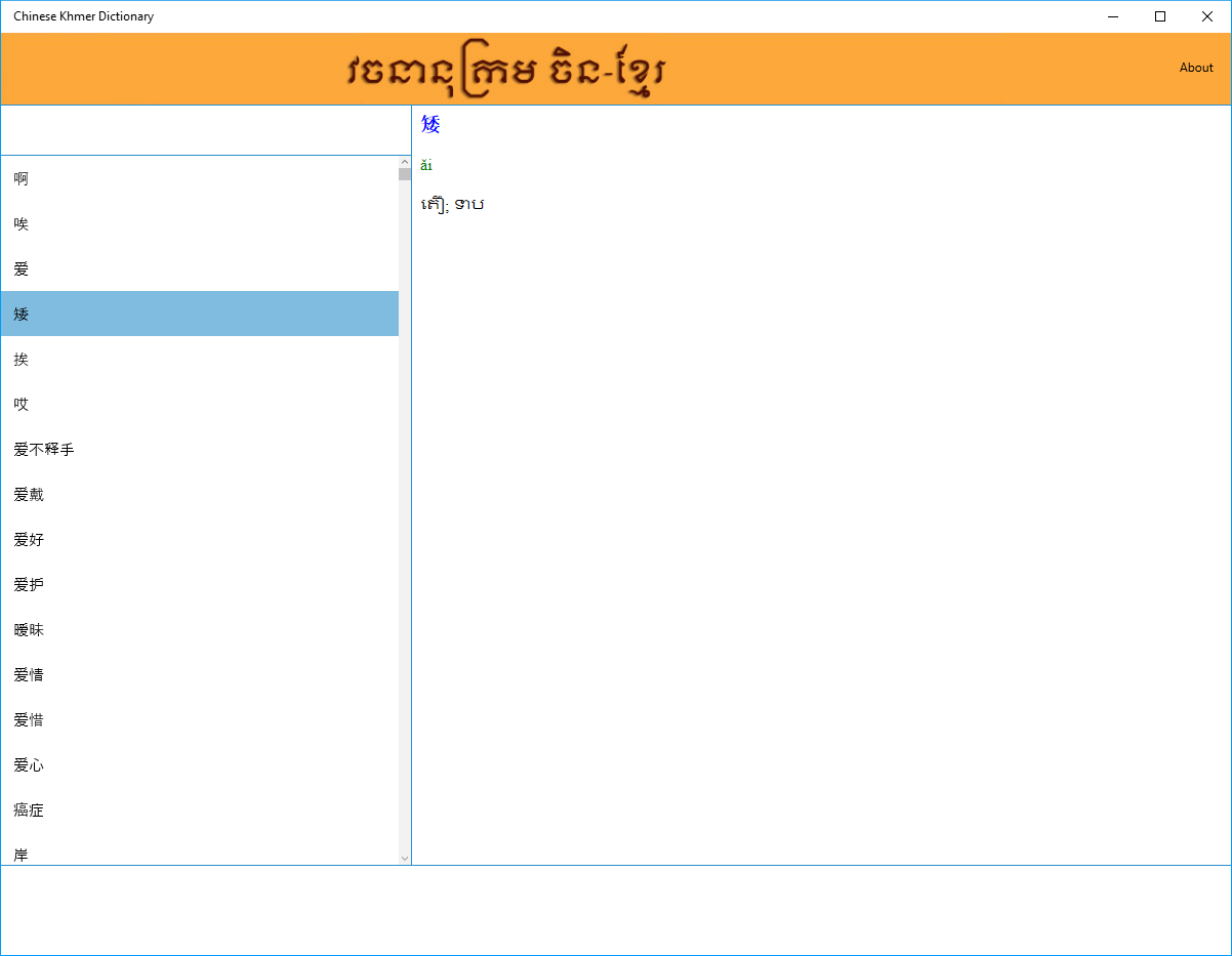 Chinese Khmer Dictionary translate Chinese word into Khmer language with your mobile phone or tablet.