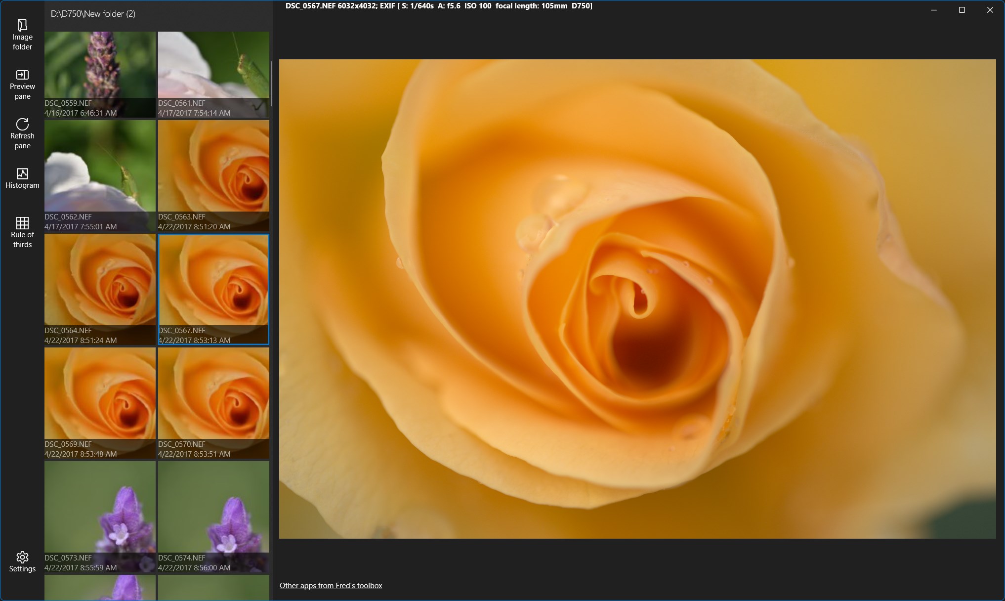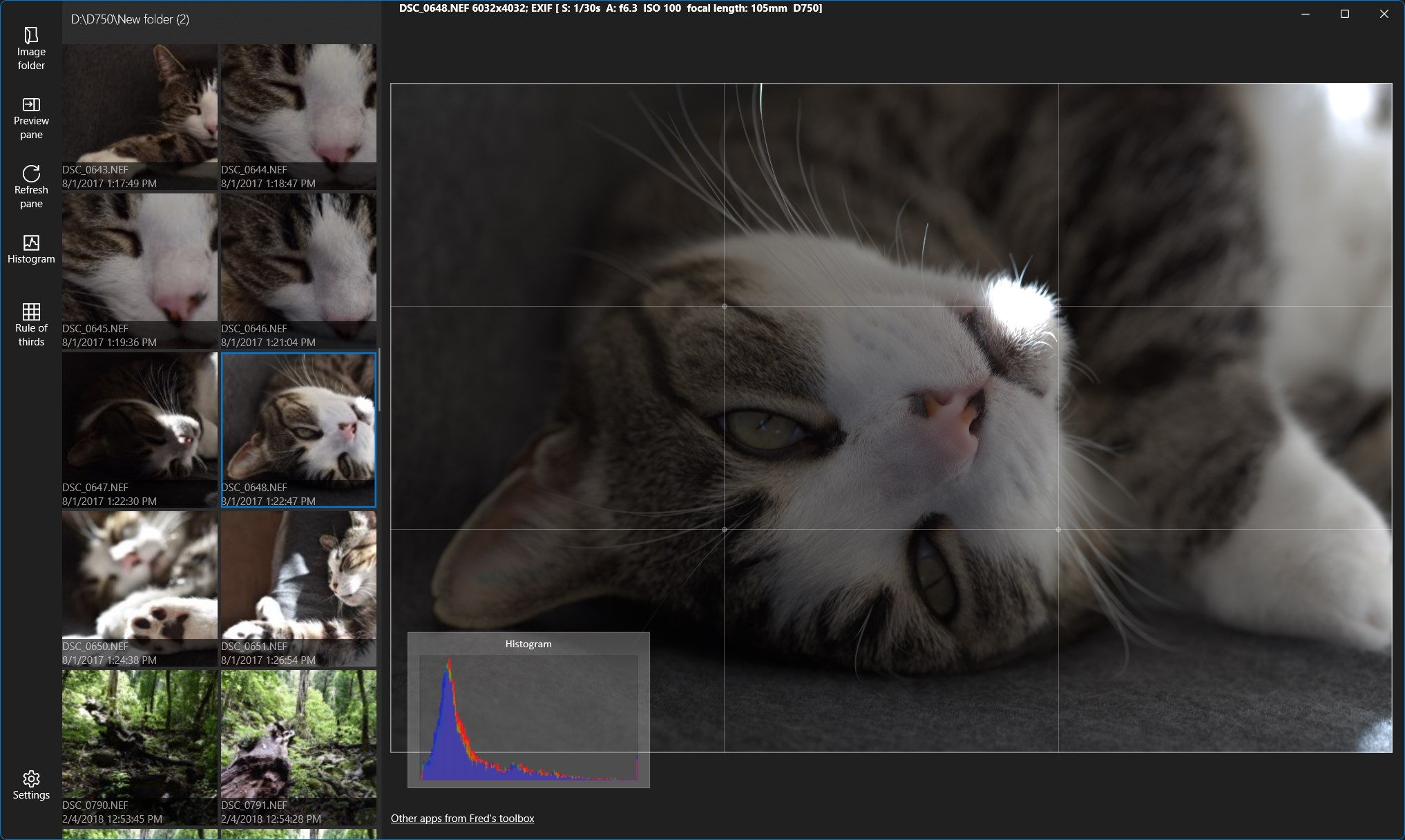 Review raw images at full resolution on any Windows deviceCheck image composition with the \'rule of thirds\' gridReview image exposure with RGB histogramTouch and mouse friendly.