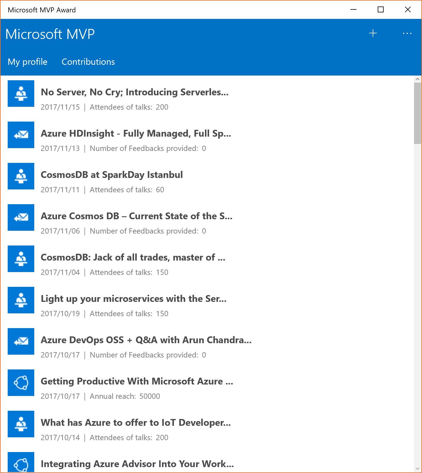 This is the official Microsoft Most Valuable Professional (MVP) Award program app. Microsoft MVP award is given to exceptional, independent community leaders who share their passion, technical expertise, and real-world knowledge of Microsoft products with others. Microsoft MVPs can use this app to access their profile, contribution data, as well as automating several different tasks creating efficiency in daily tasks.