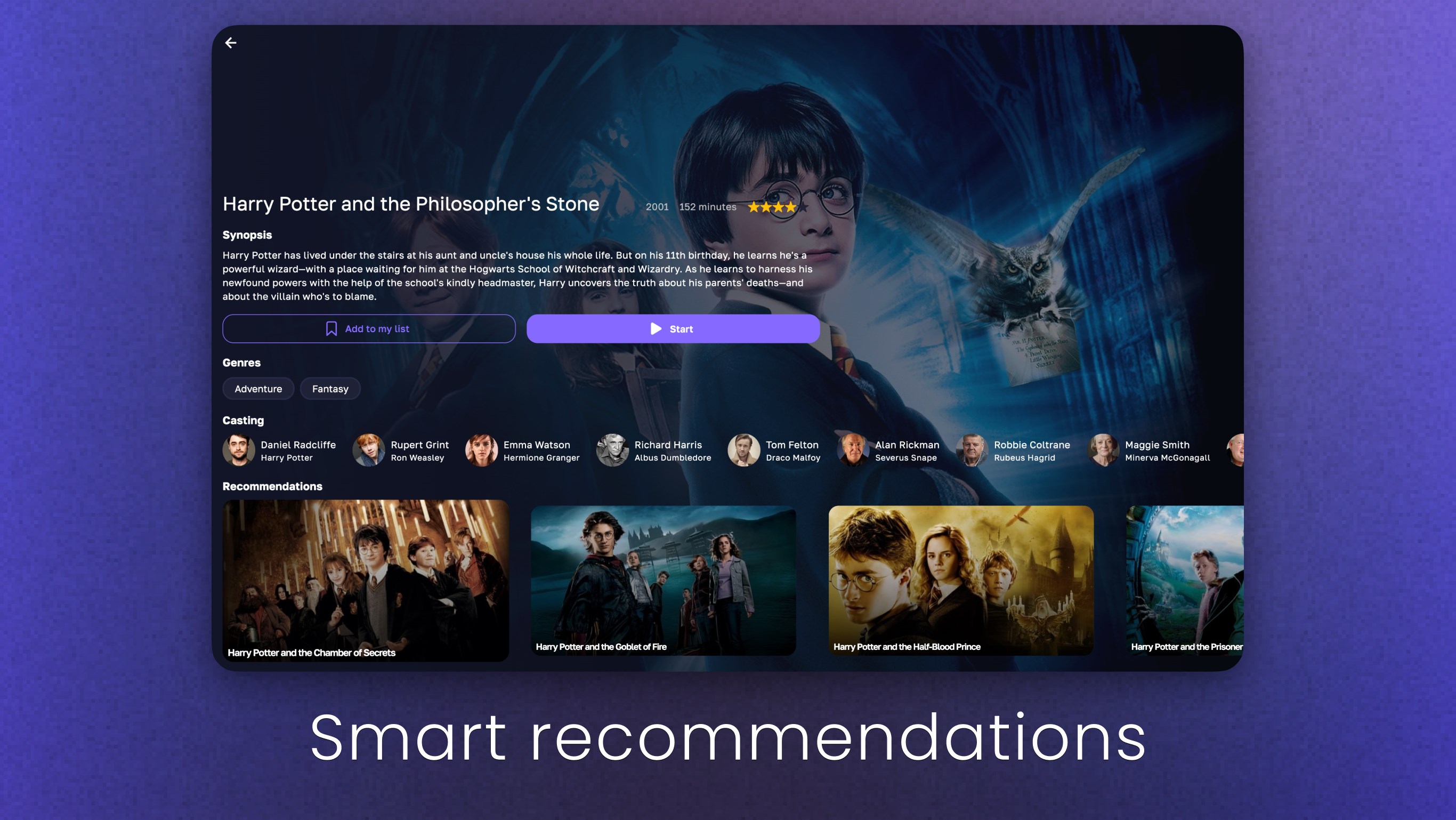 - The play button of a movie could display \“Resume\” instead of \“Start\”.