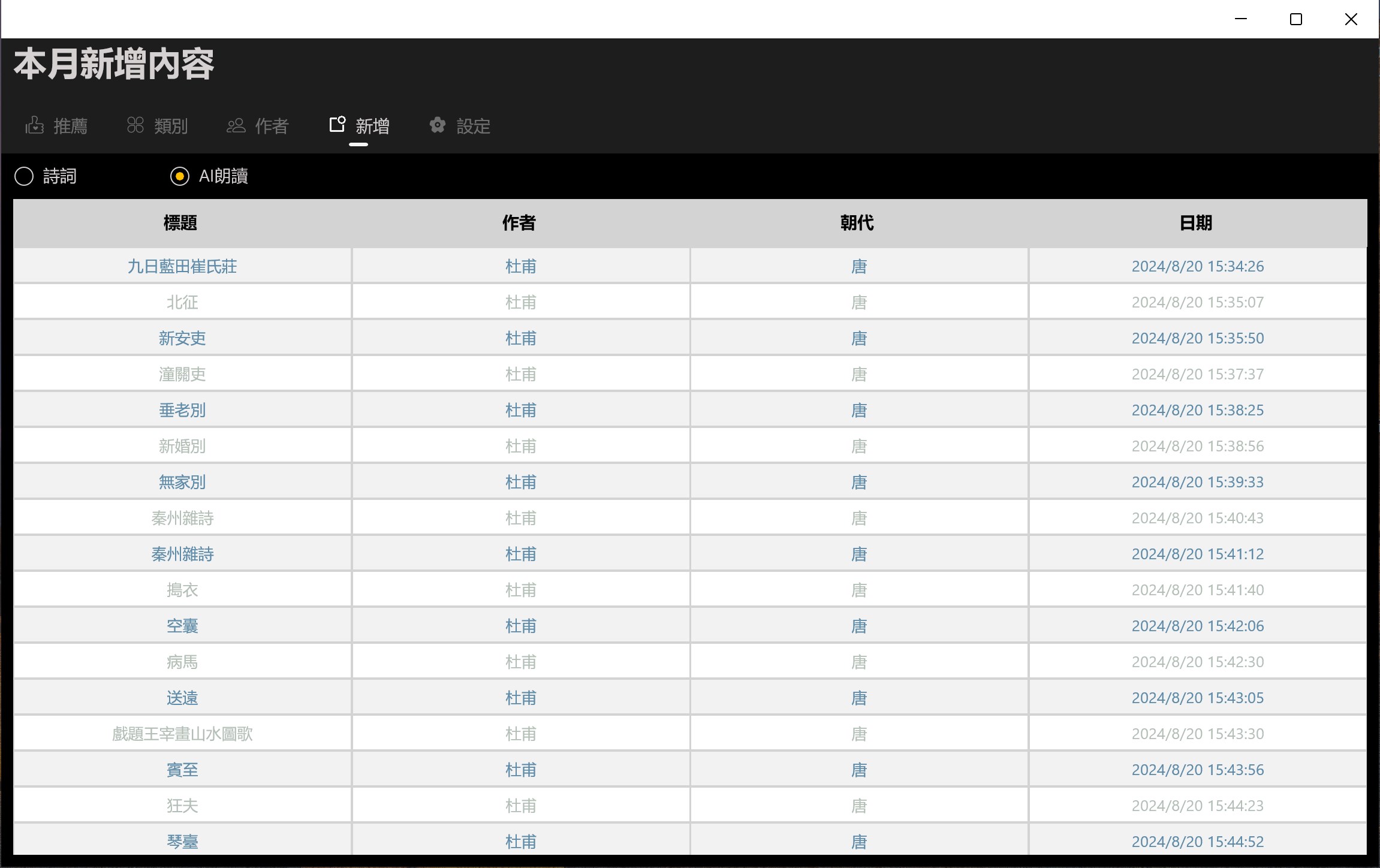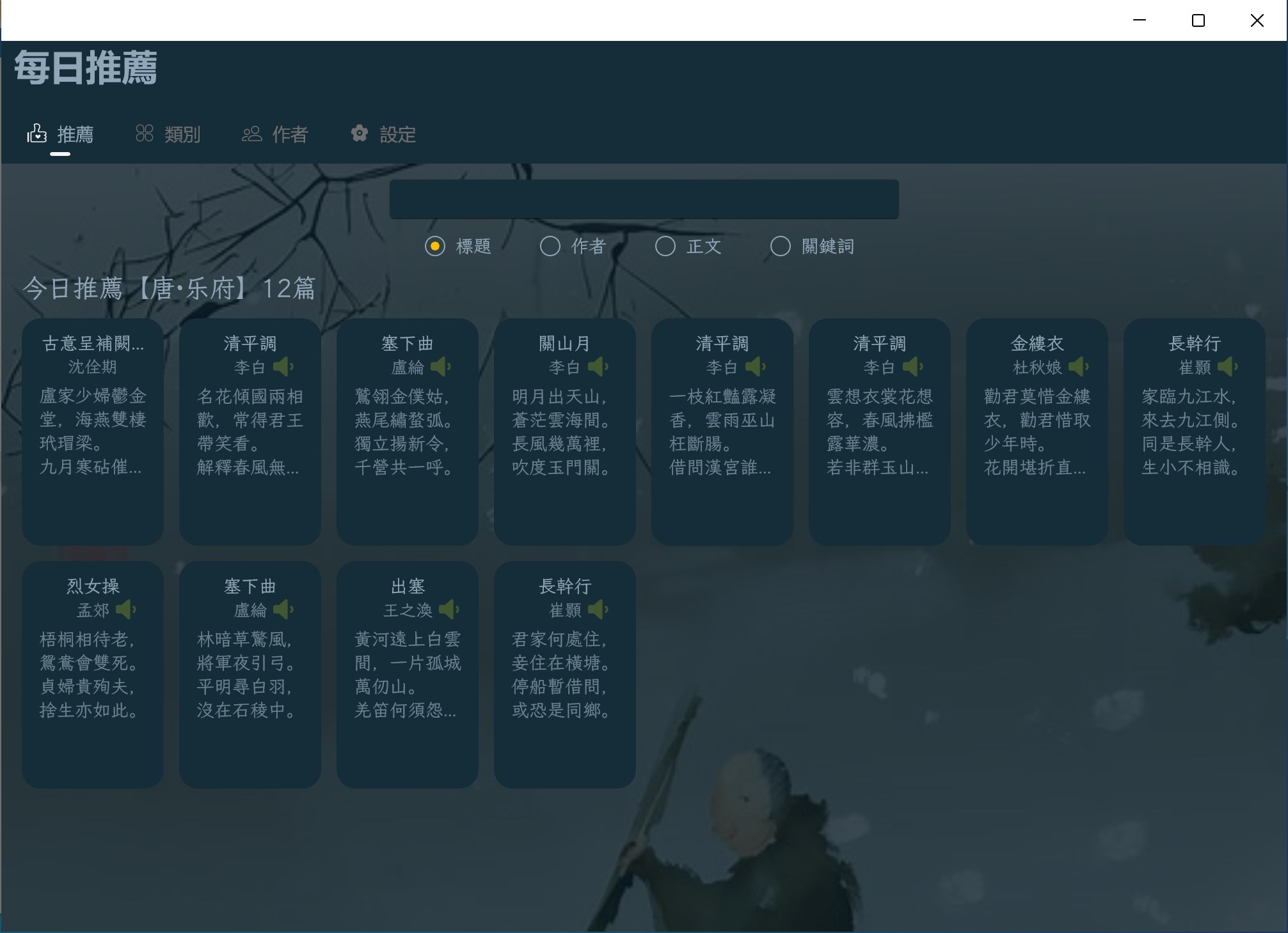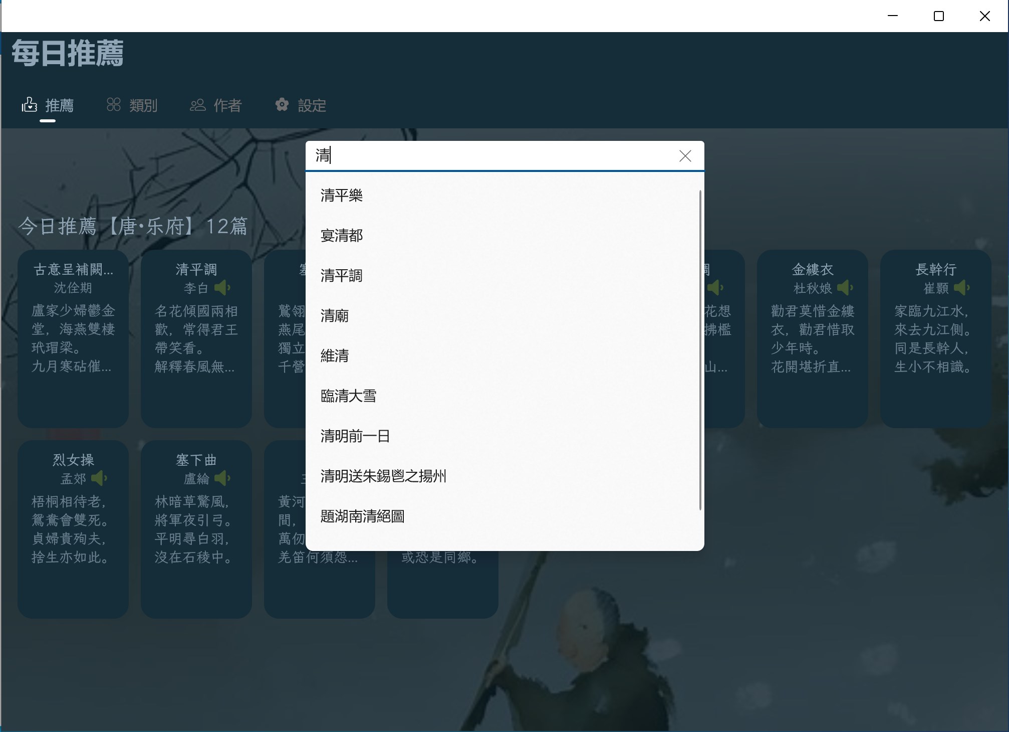 ▪ Search poetry by dynasty or author