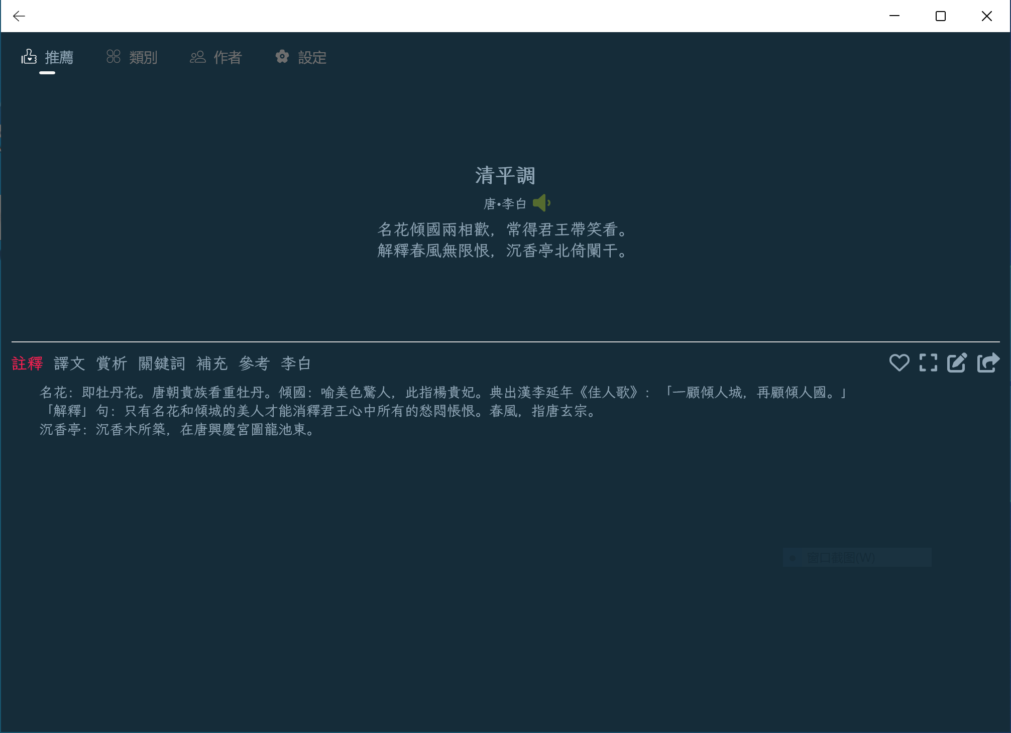 ▪ It has rich poetry content, including annotations, appreciation, translation, author's information etc., allowing you to appreciate the style and connotation of poetry from different angles