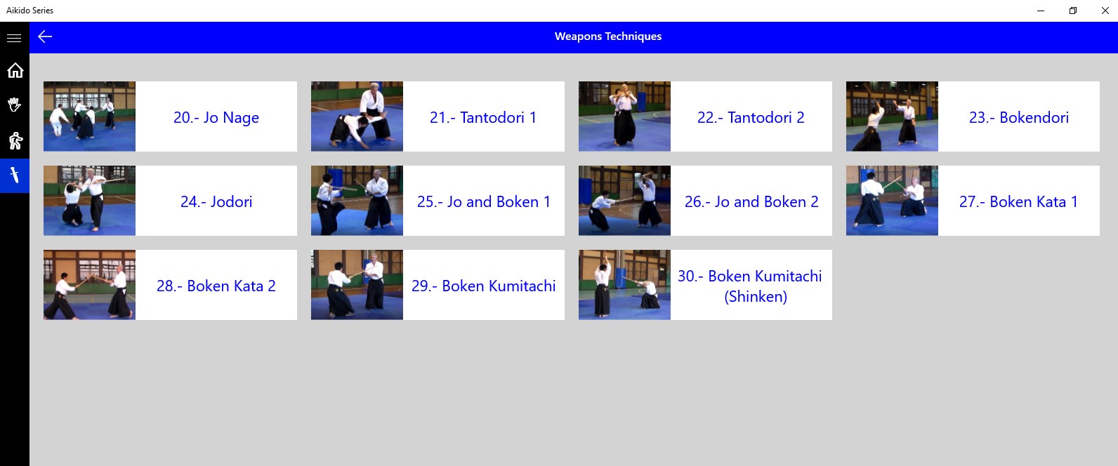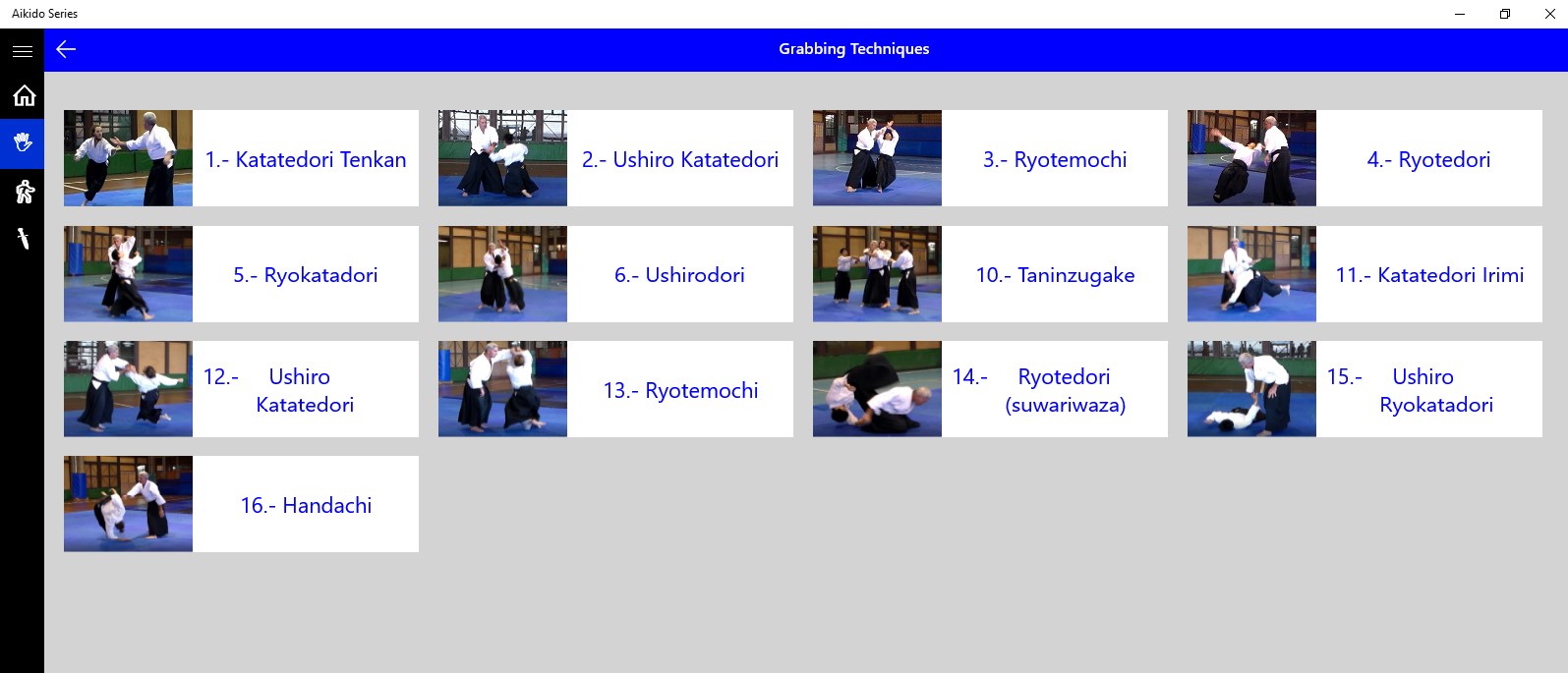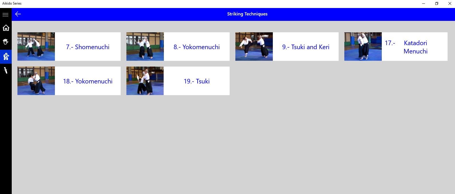 - 3 types of series: Grabbing, Striking and Weapons Techniques in a modern Windows 10 format.