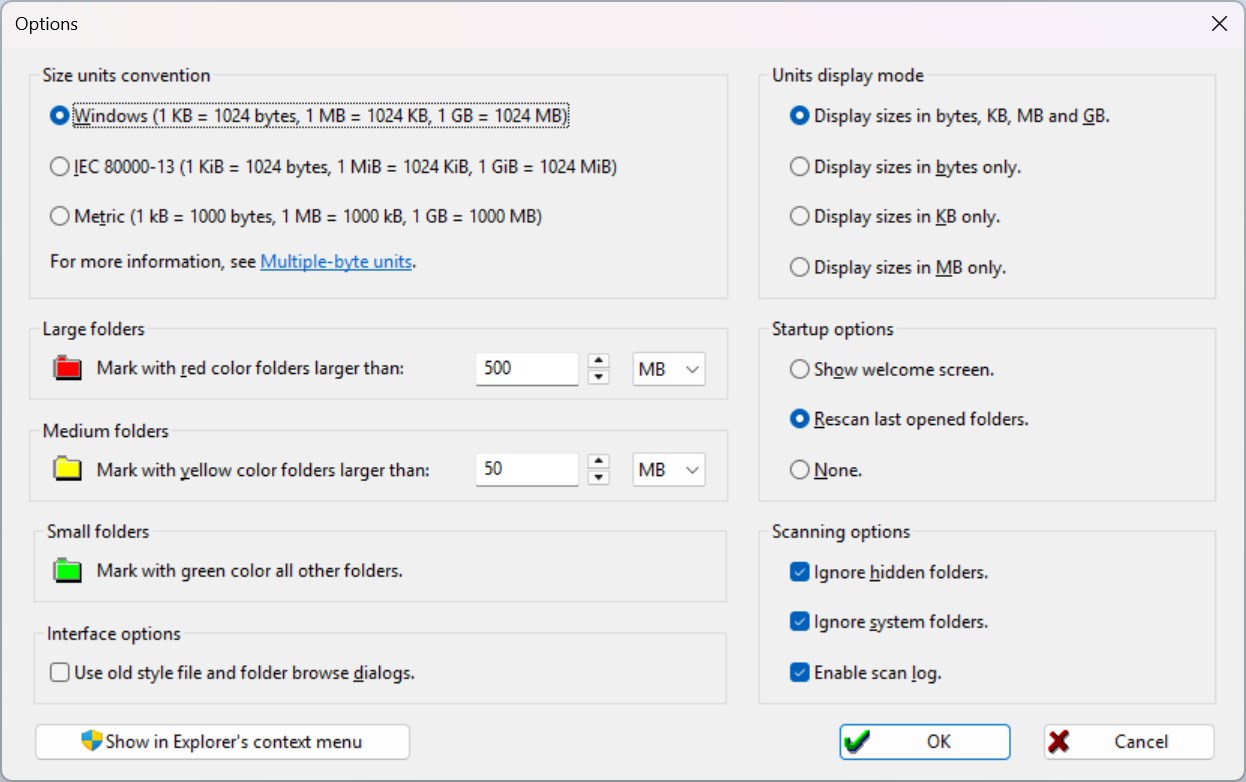 - Added context menu command to scan the selected subfolder in a new window.