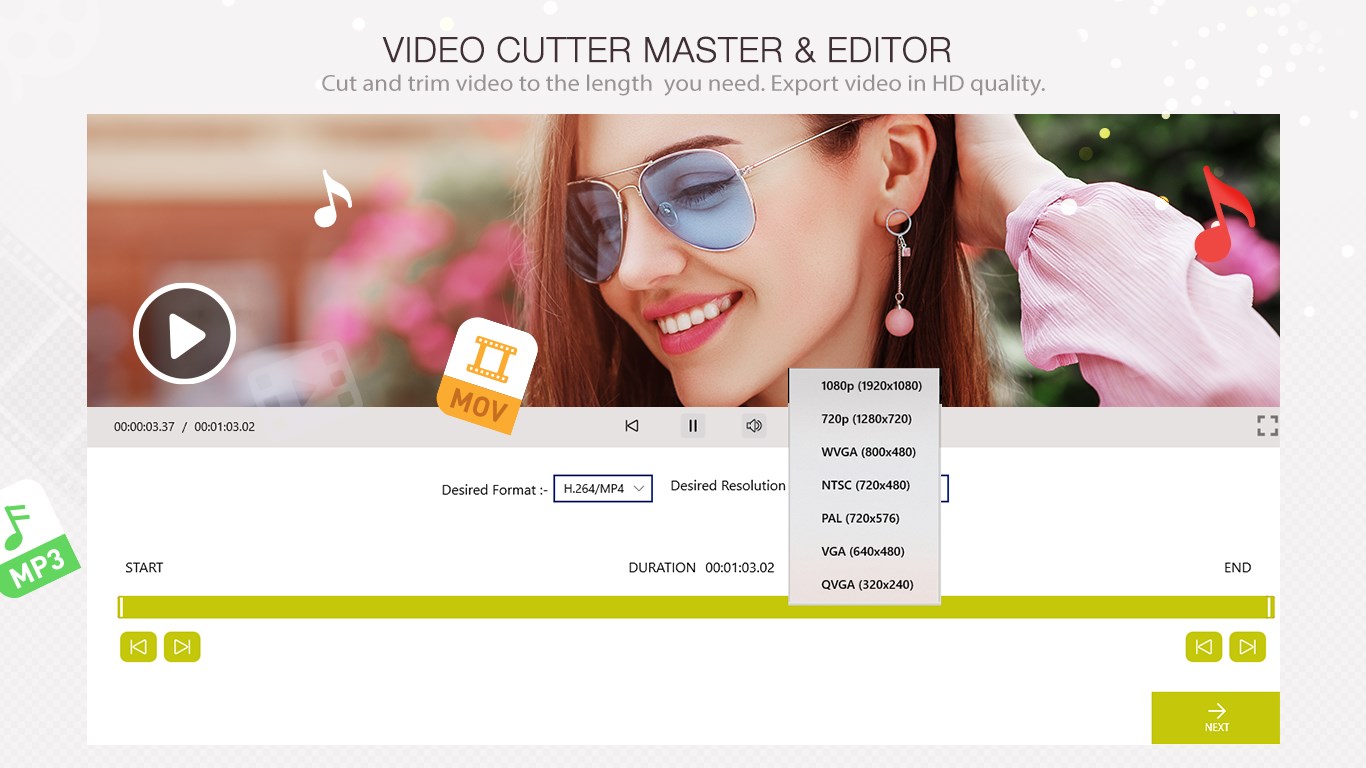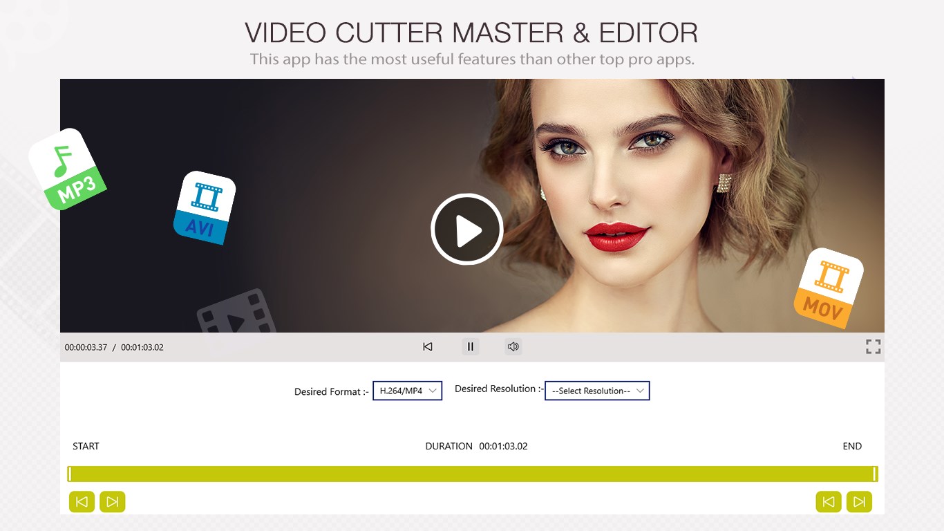 + Video Cutter is the easiest way to cut any video simply by selecting starting and ending point.