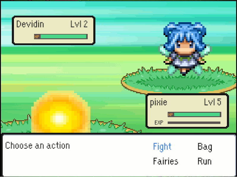 This is a simple RPG heavily imspired by the early pokemon games. where you have to find and battle your fairies and evolve them so far the game is still under devlopment but more quests ect will be added on relese