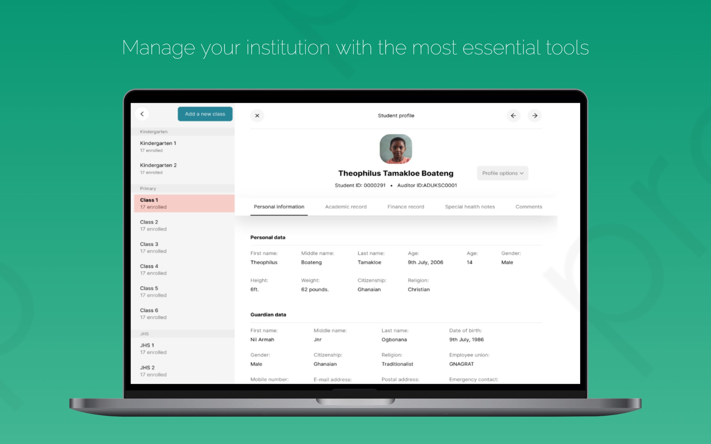 for all educational institutions and their stakeholders to easily disseminate information with a click of the button. It is a platform for educational institutions to effectively track and keep records of their students and staff, disseminate information to all of its stakeholders.