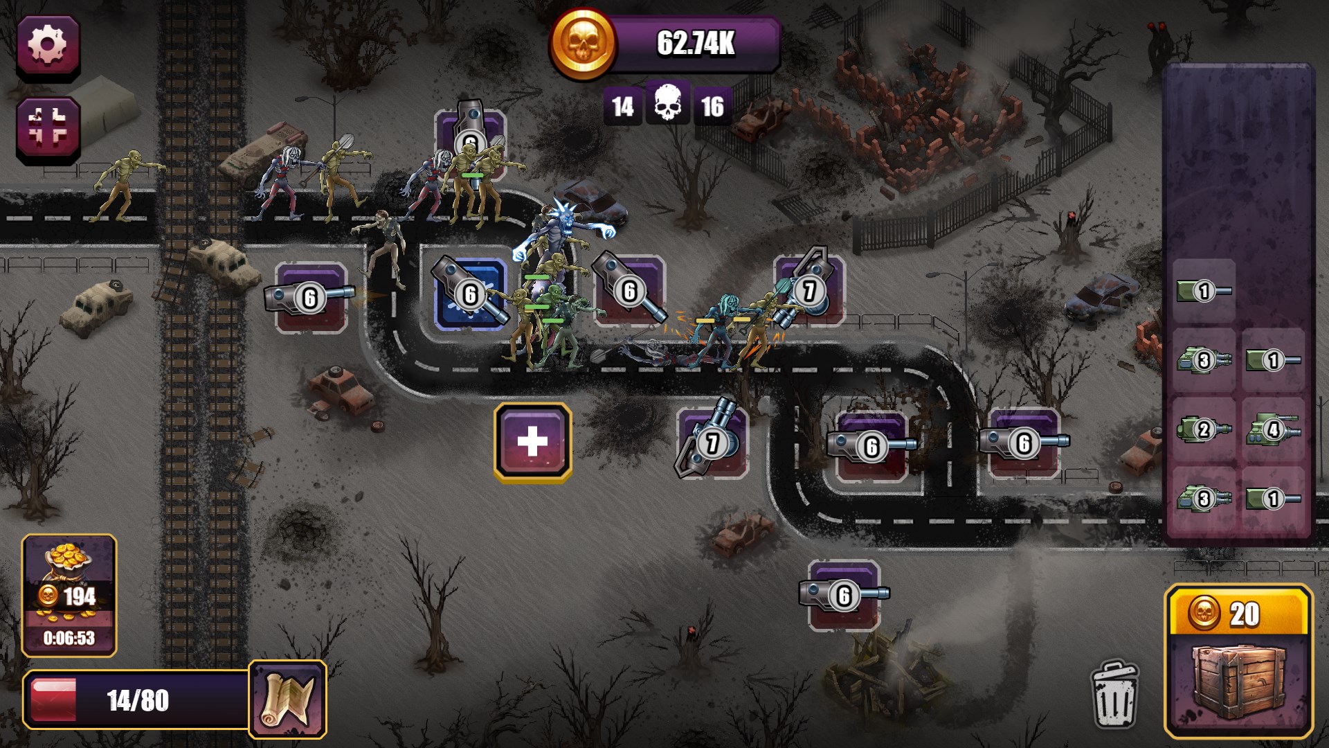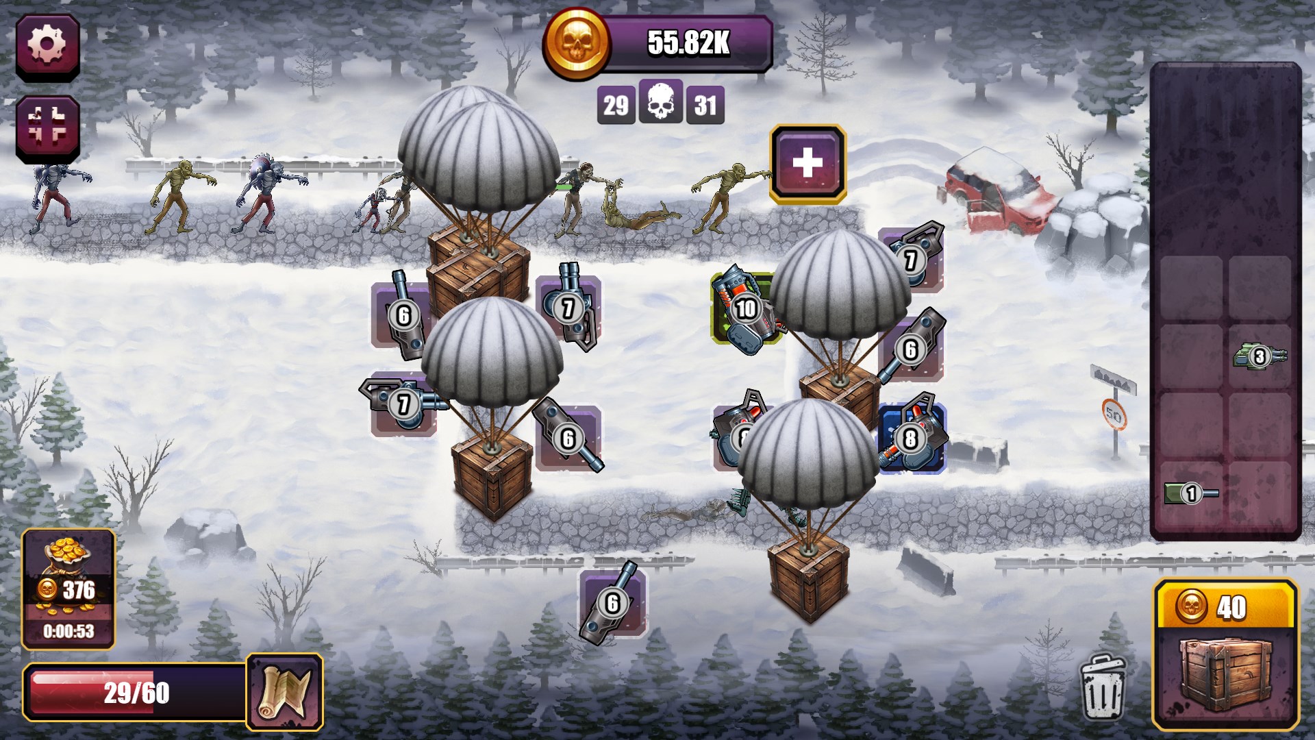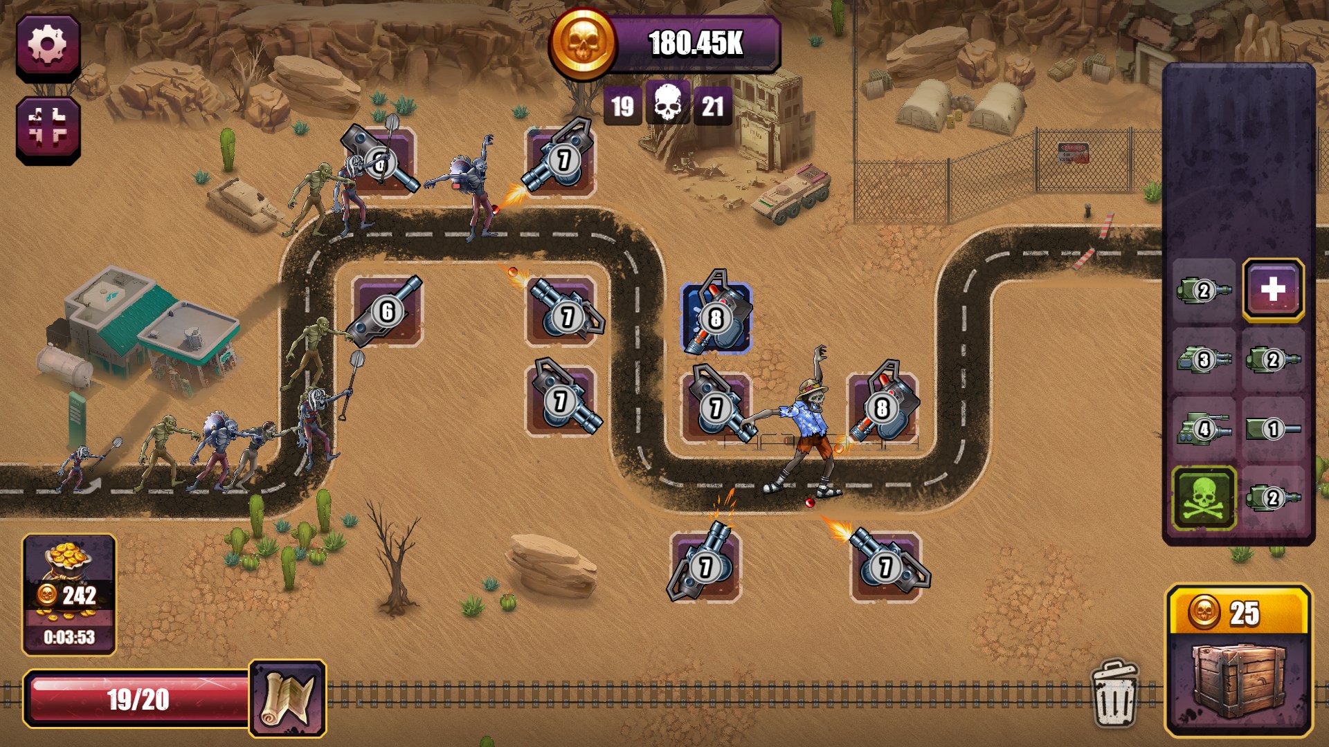 Progress through the different environments and defend the last sanctuaries of humanity! Merge your towers and use boosters to bolster your chance of success.