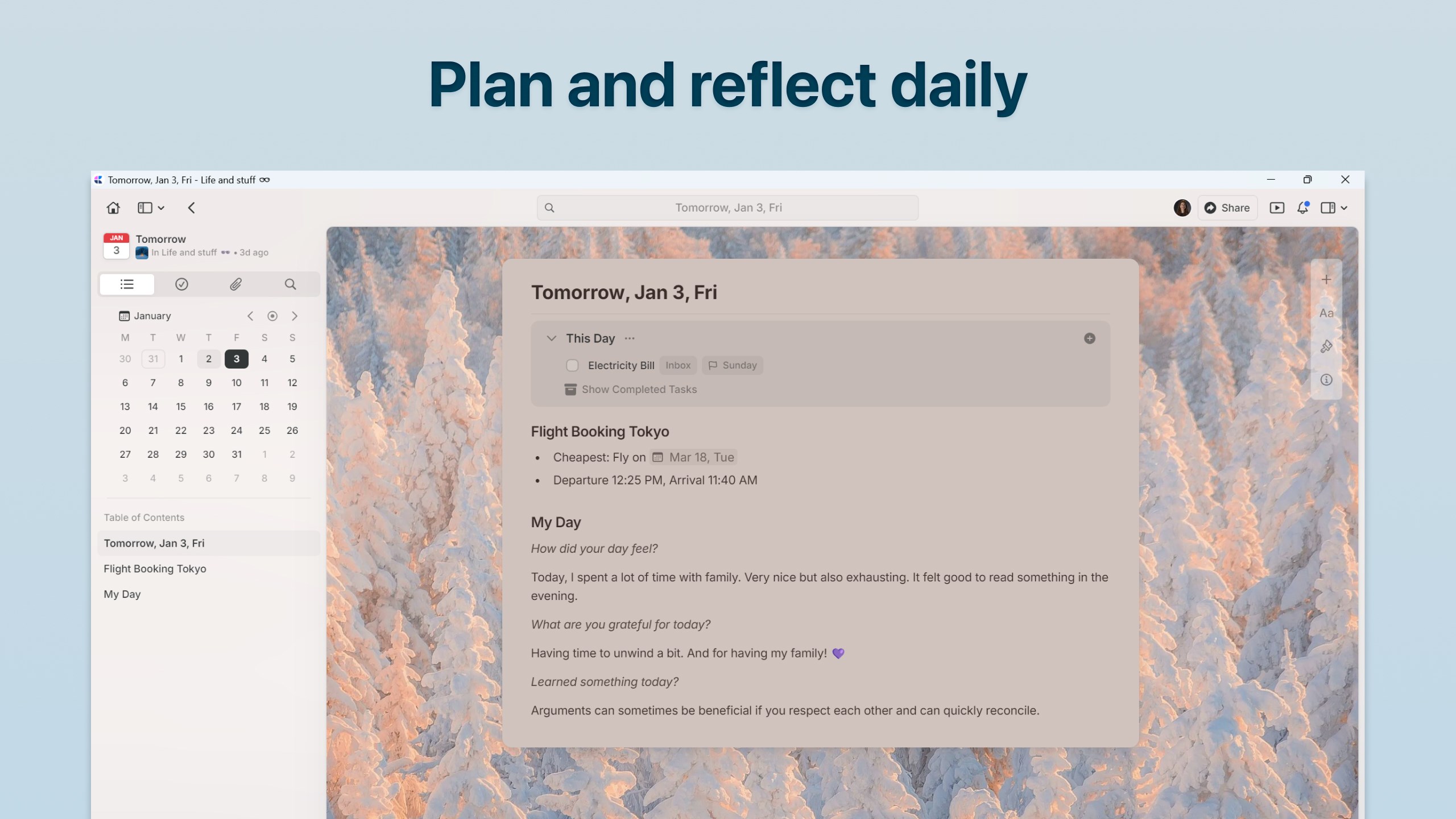 Make daily planning effortless with Daily Notes. Capture quick thoughts, plan your schedule, track tasks, or maintain your personal journal — all in one dedicated space. Switch to the calendar view to visualize your progress, reflect on your week, and understand how your days are shaping up.