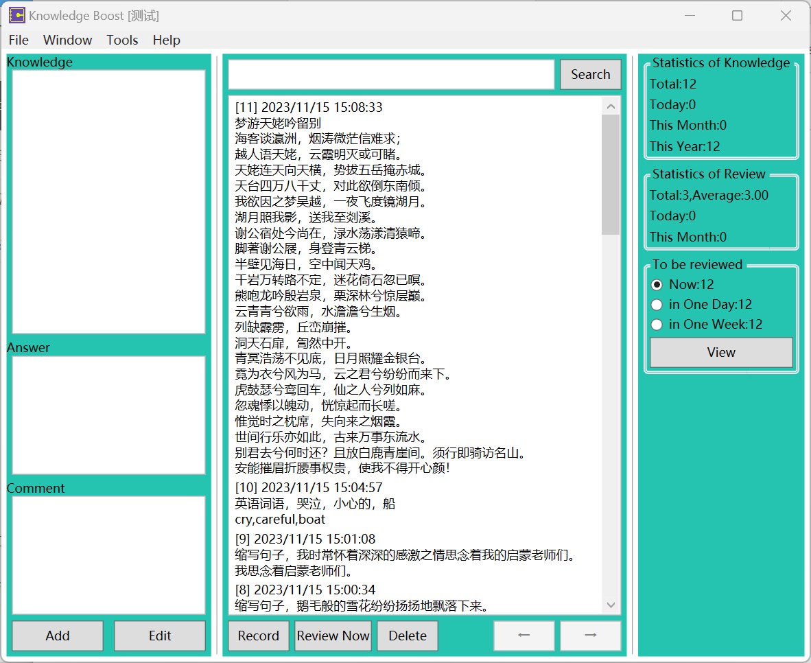 The software is used to record and review the learned knowledge regularly, and provides a convenient printing function of the content to be reviewed.