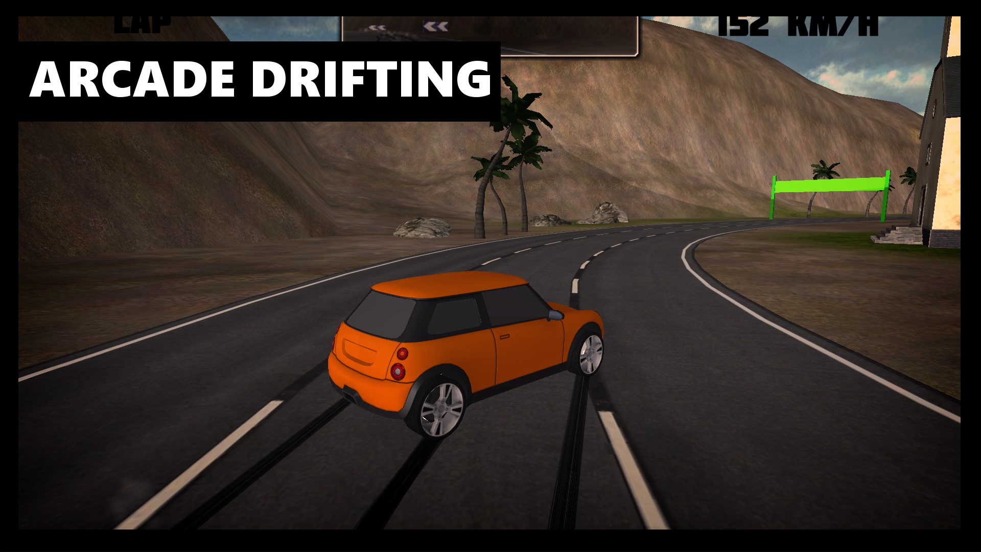 1 day free trialFun arcade racingDrifitingSplit screenMultiplayerOnline highscoreAI driversSuper smooth controlls 6 different cars