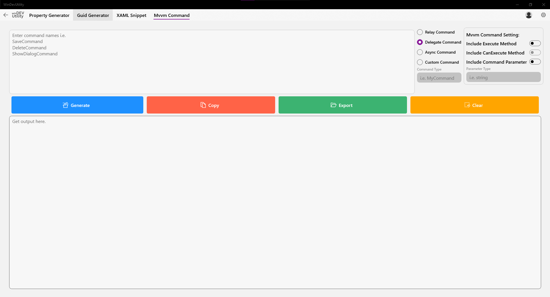 WinDEV Utility is an open-source and free utility for improving productivity during Windows-base development. WinDev Utility is a set of utilities for generating C# full property included property change events, Mvvm Commands( i.e. ICommands, RelayCommand, DelegateCommand, and AsyncCommand) and XAML generation as you’re likely to get without having to pay for one. It provides equally flexible while the generation of code and XAML.