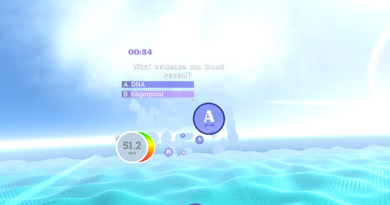 Fly through pleasant pastel clouds as you twist and turn, diving through hoops in the sky. You chart your course by soaring through the ring with the correct answer to science questions posed in the clouds.