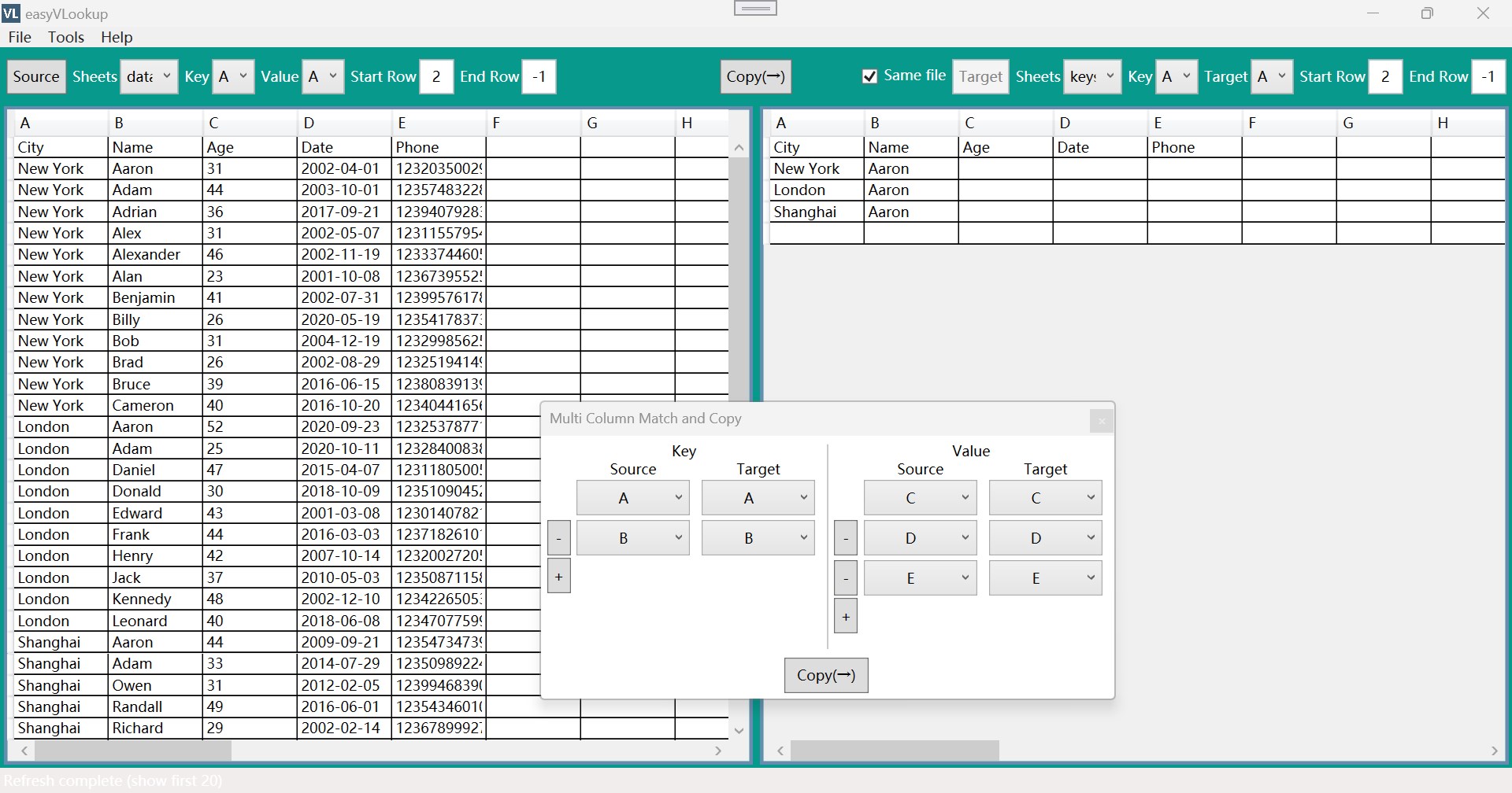 - Multi-keyword matching can copy multiple columns of data at the same time.