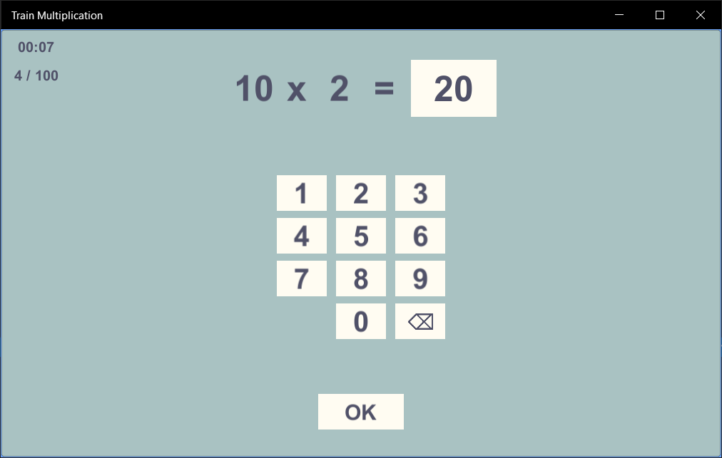 This is a small training application for kids to learn multiplication.