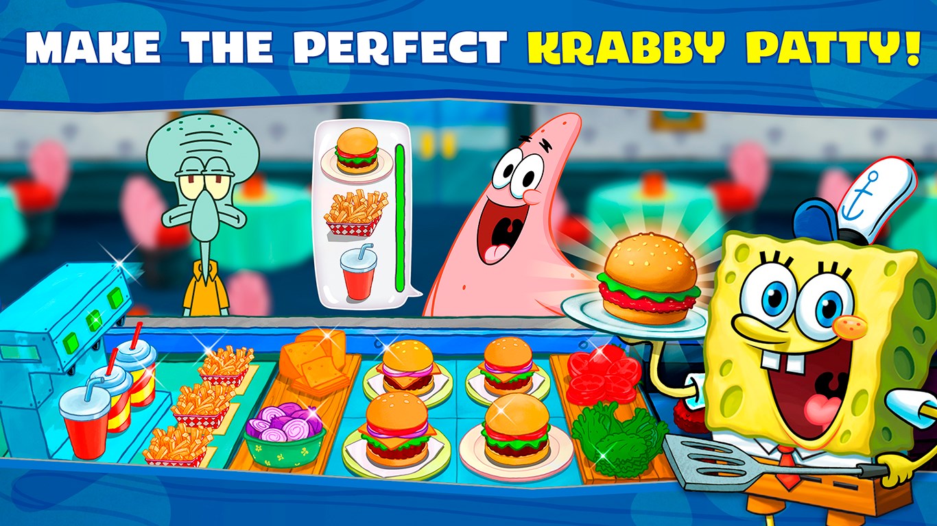 Cook and serve up delicious food including Krabby Patties, pancakes, BBQ and more! Get behind the grill as SpongeBob SquarePants to provide speedy service to the residents of Bikini Bottom. You’ll serve tons of familiar faces like Patrick Star, Sandy Cheeks, Squidward and many more! Keep your customers happy and be rewarded with tips, likes and exciting bonuses! Start as a junior fry cook and train to become one of Bikini Bottom’s premier fast-food chefs!