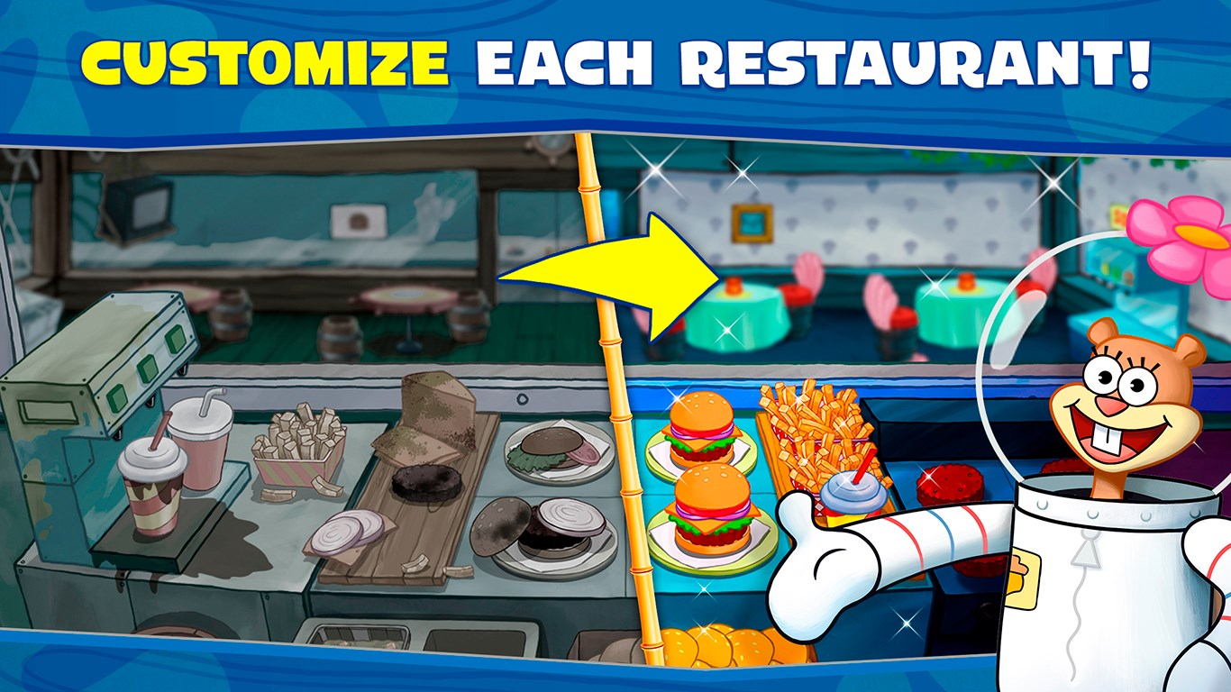 Create your own Bikini Bottom kitchen, decorate and customize your restaurant, and get ready to serve up delicious food to your guests! In this fast-food cooking game, put your time management skills to the test and experience the crazy cooking action of the SpongeBob universe. Fire up the grill and get ready to cook!