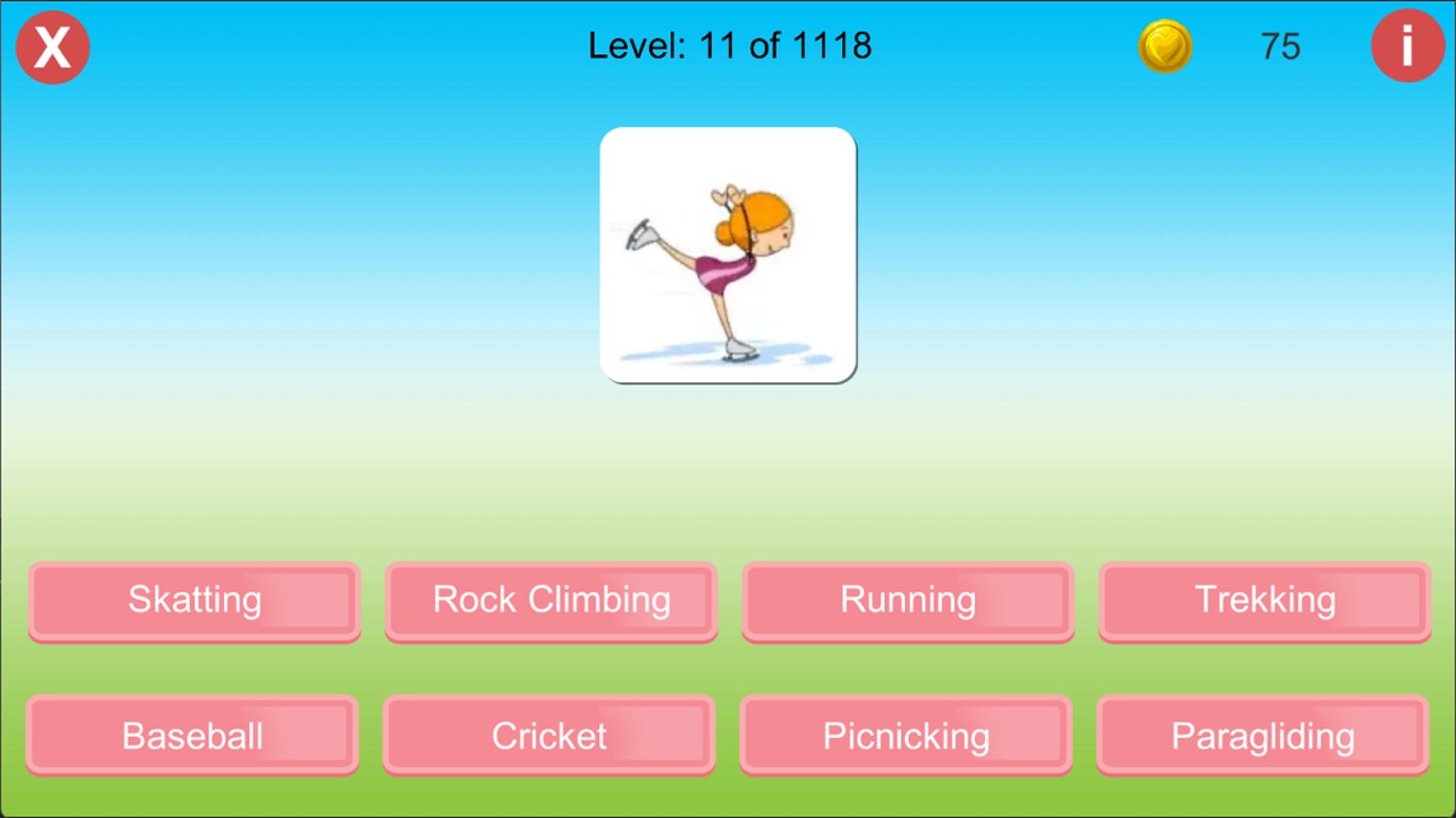 - Two types of quiz with guess the picture and words.