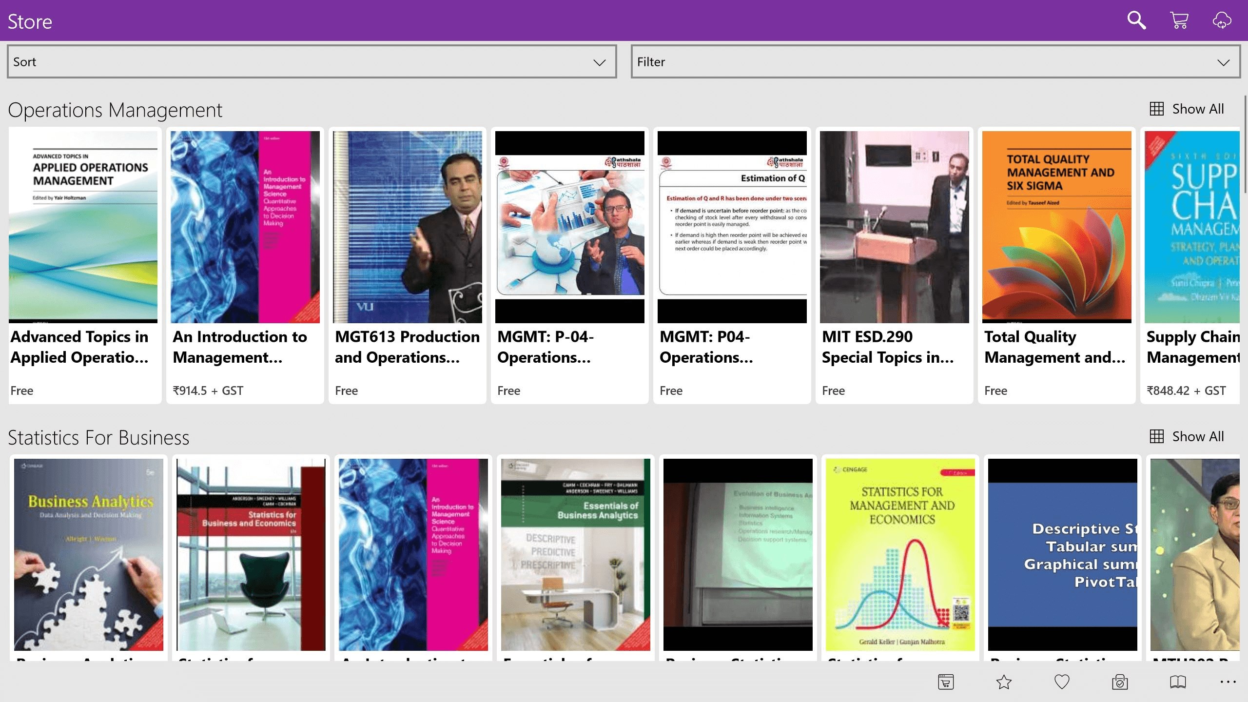 Store is used for distributing digital books and contains both free and paid books. Store has about large collection of free books and Video courses from popular learning channels. Courseware published by institutes or Corporates , e-books or e-courses published by leading publishers are available. Quiklrn store is auto-organized according to course selected and simplifies the access to the required content.