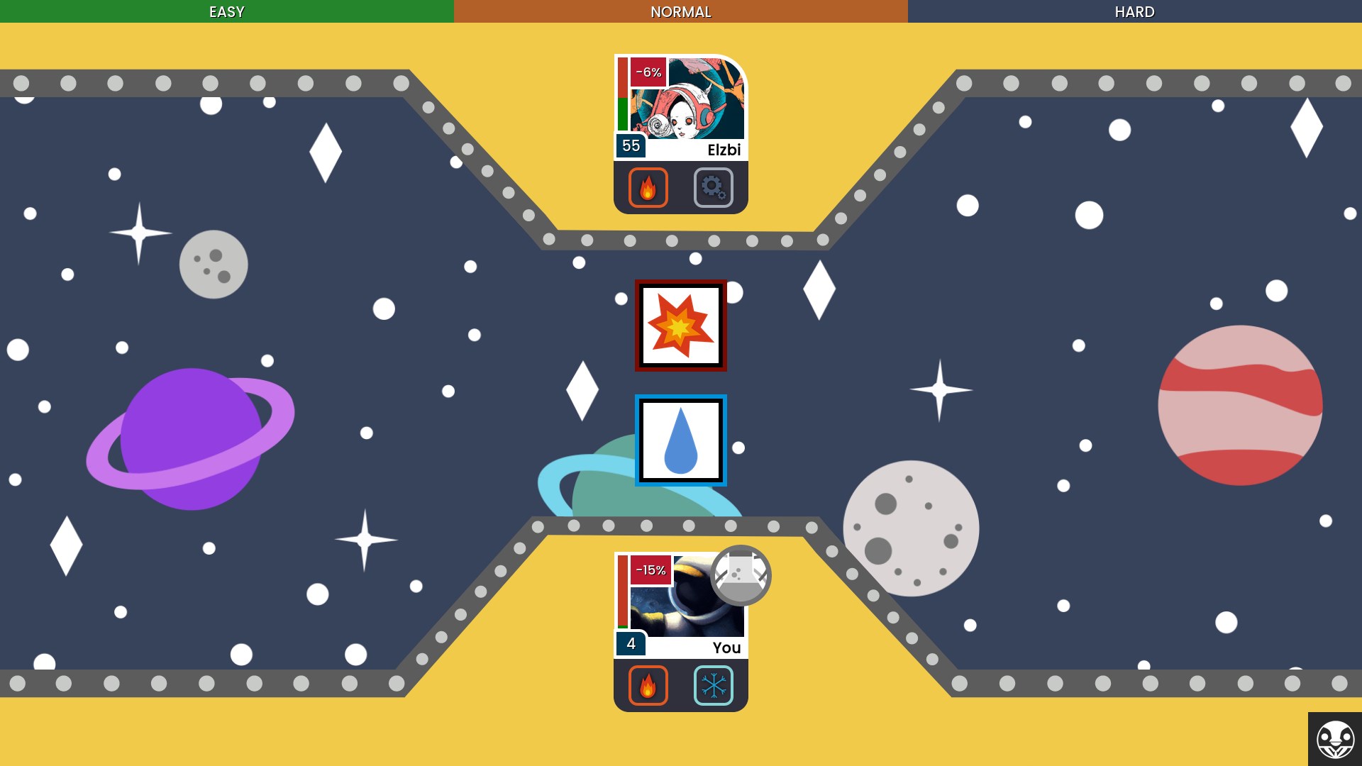 Combine two elements to create a reactionUse a efficient strategy to defeat your oponentsPlay now a new style of rock-paper-scissors