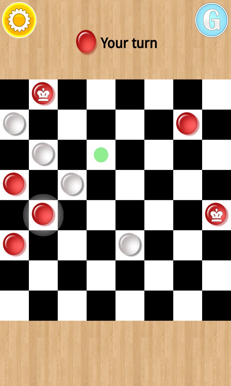 ✓ When a piece reaches the top row it becomes a king. Kings can also be moved backwards and capture backwards.