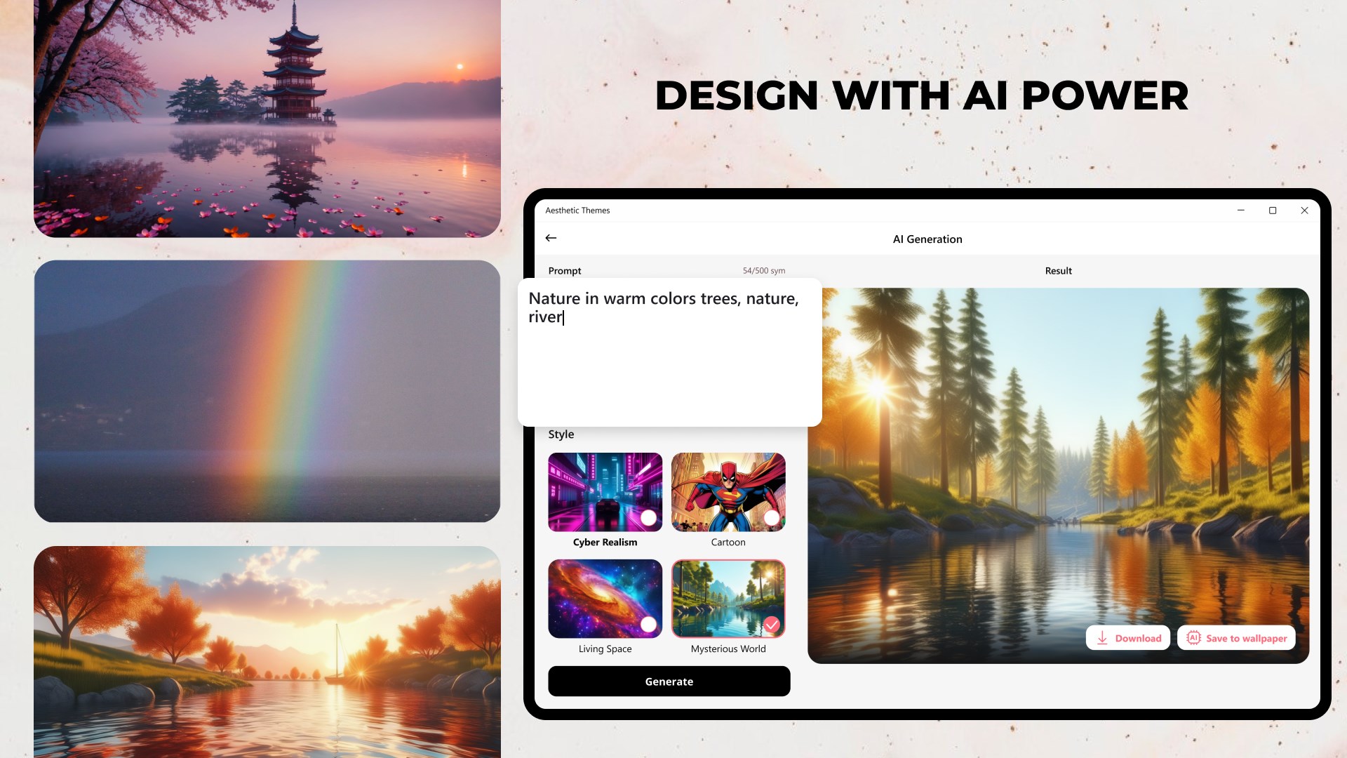 With just a few clicks, create unique and personalized backgrounds tailored to your preferences. Explore endless possibilities and transform your screens with AI!