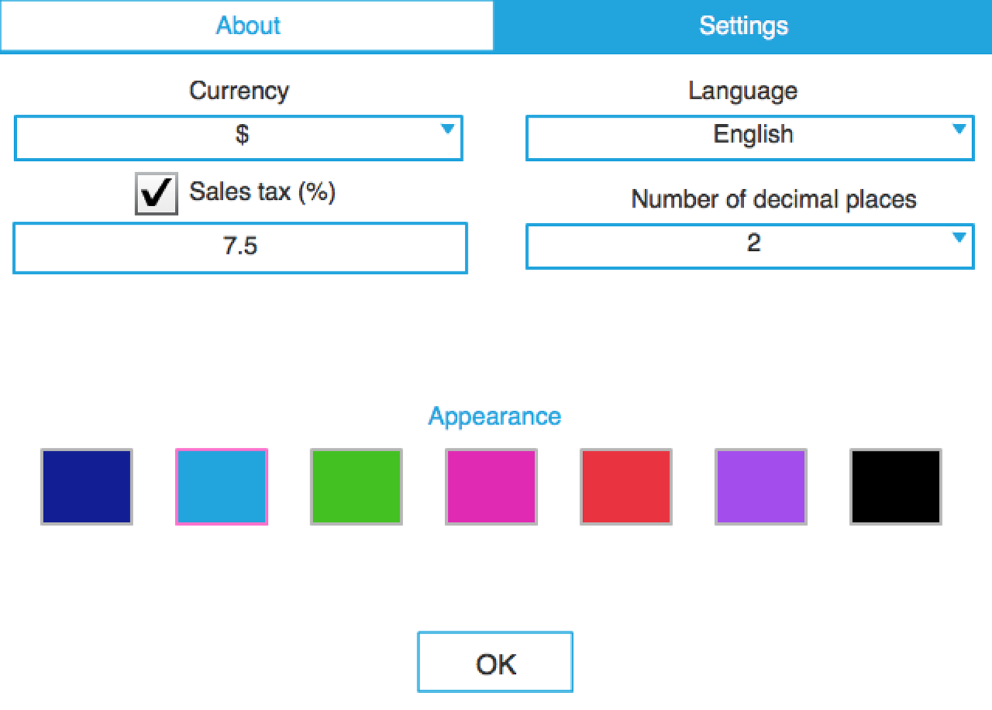 The app supports rounding to the specified number of decimal places from 0 to 3. By default, the app displays 2 decimal places. To round results to the nearest whole number, select 0 decimal places.
