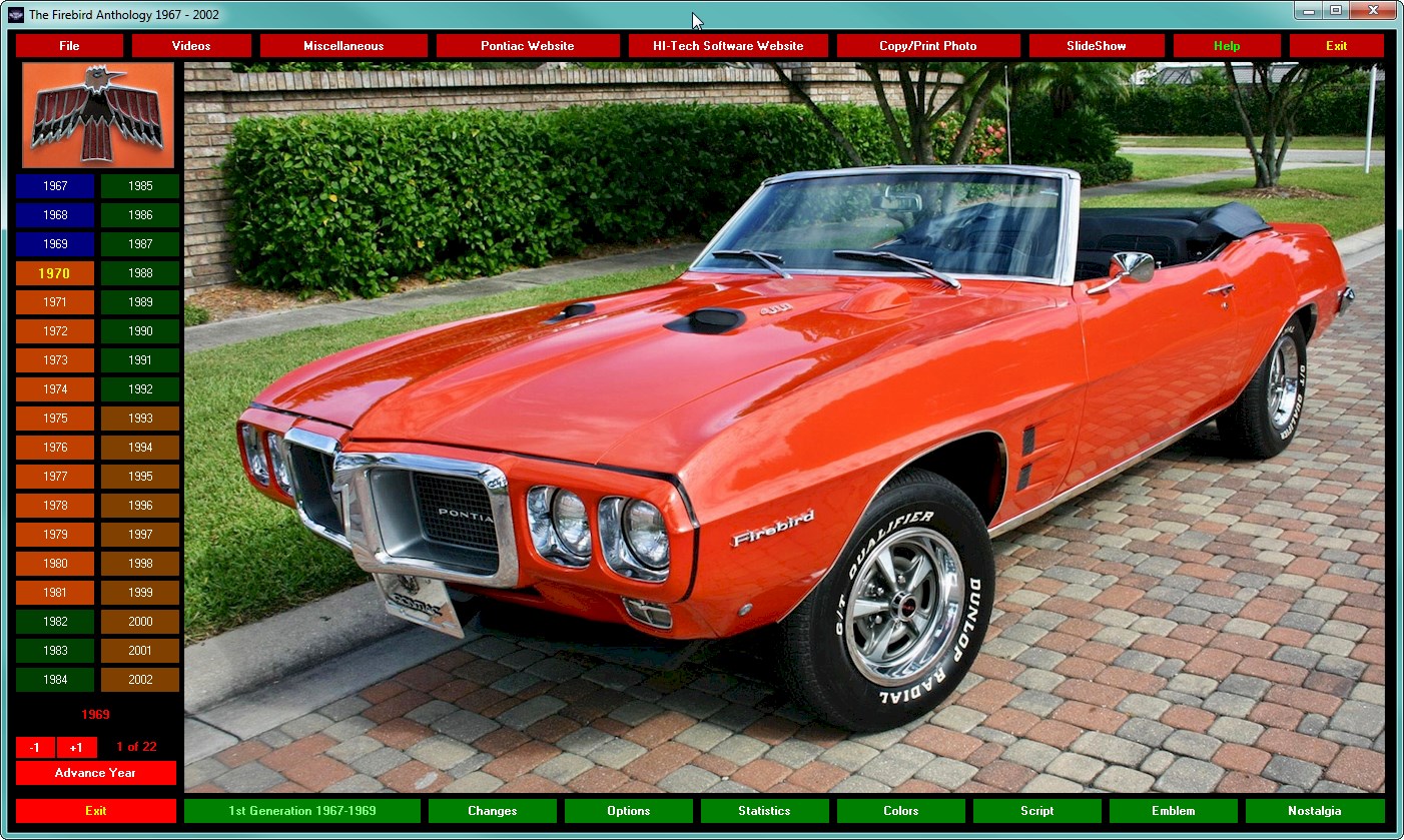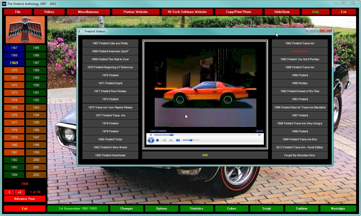 The Firebird Anthology 1967 - 2002 is the only GM officially licensed DVD-ROM encyclopedia about the Pontiac Firebird. This photographic safari through the world of the Firebird contains nearly 700 high resolution (1200x730) photos, dozens of graphics, 30 videos and more to guide your tour, starting with their introduction 1967 and continuing to the final 2002 Trans Am Collector Edition super cars. Browse the statistics, the options, those tremendous horsepower muscle cars of the sixties. It’s all here! Everything you want to know about every year. A must have for any Firebird owner or enthusiast!