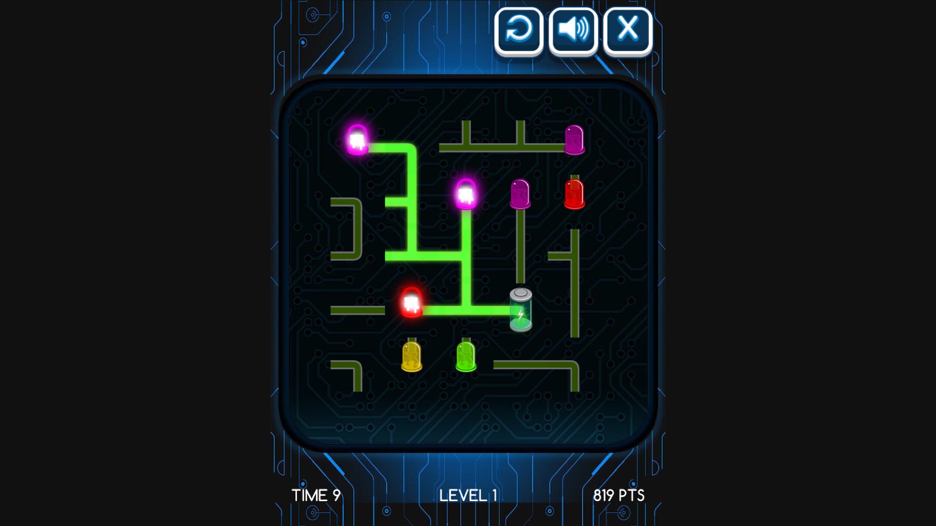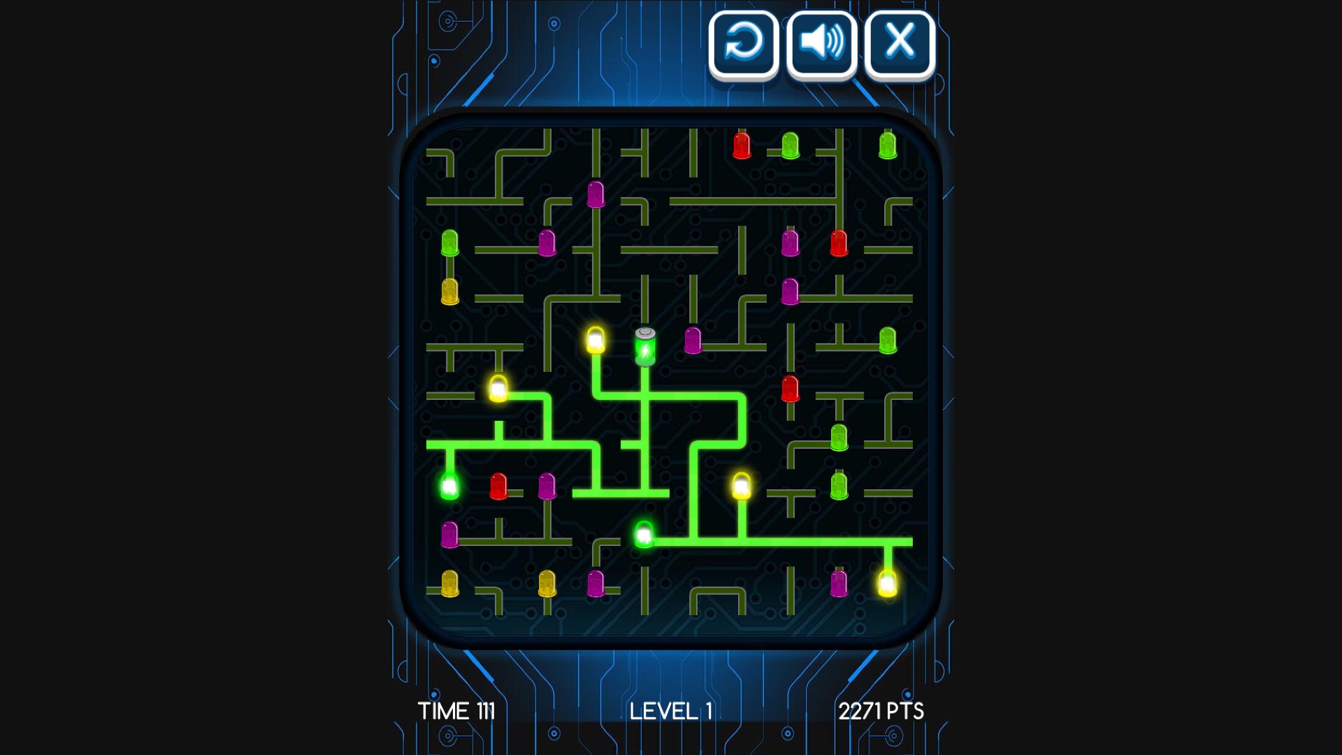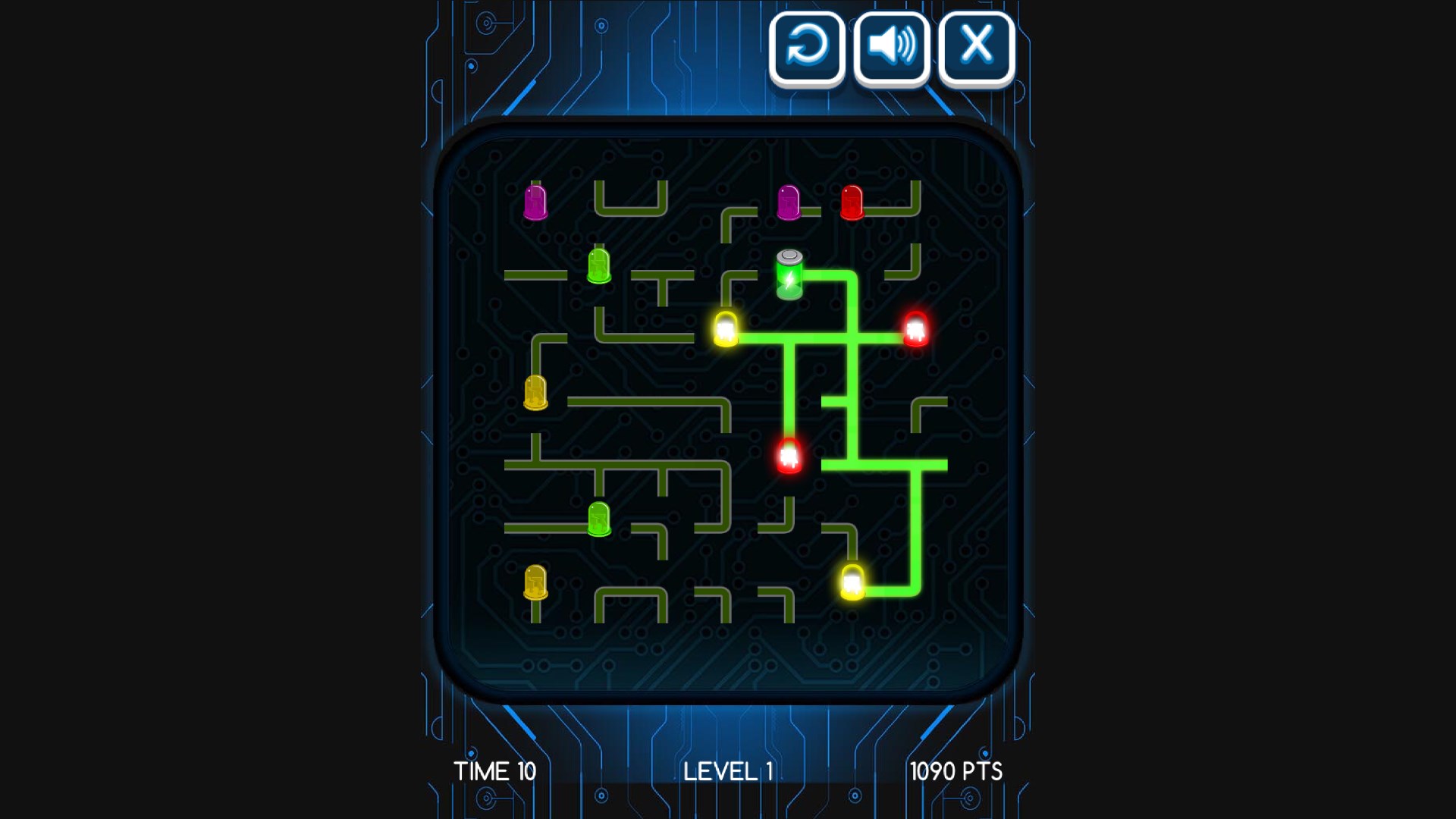 You can choose 4 different difficulty levels Easy, Normal, Hard, and Extreme. Circuit simulation game consists to Connect every available cable and make sure every cable is connected to the electrical energy from a battery.