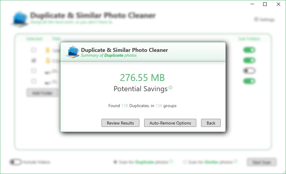 Remove duplicate or similar photos and videos from your computer and recover disk space.