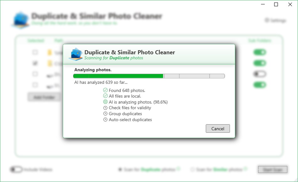 • Based on feedback we rebuilt it from the ground up using Microsoft\'s latest technology including the new AI analysis and finding duplicates of different sizes across multiple different file formats.