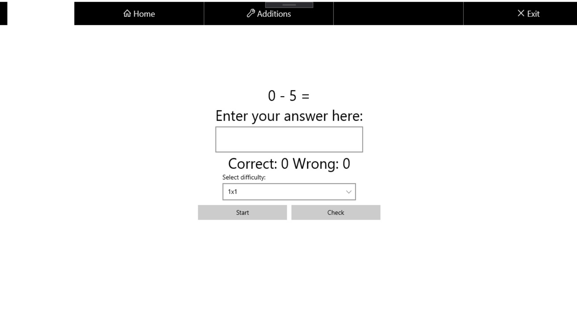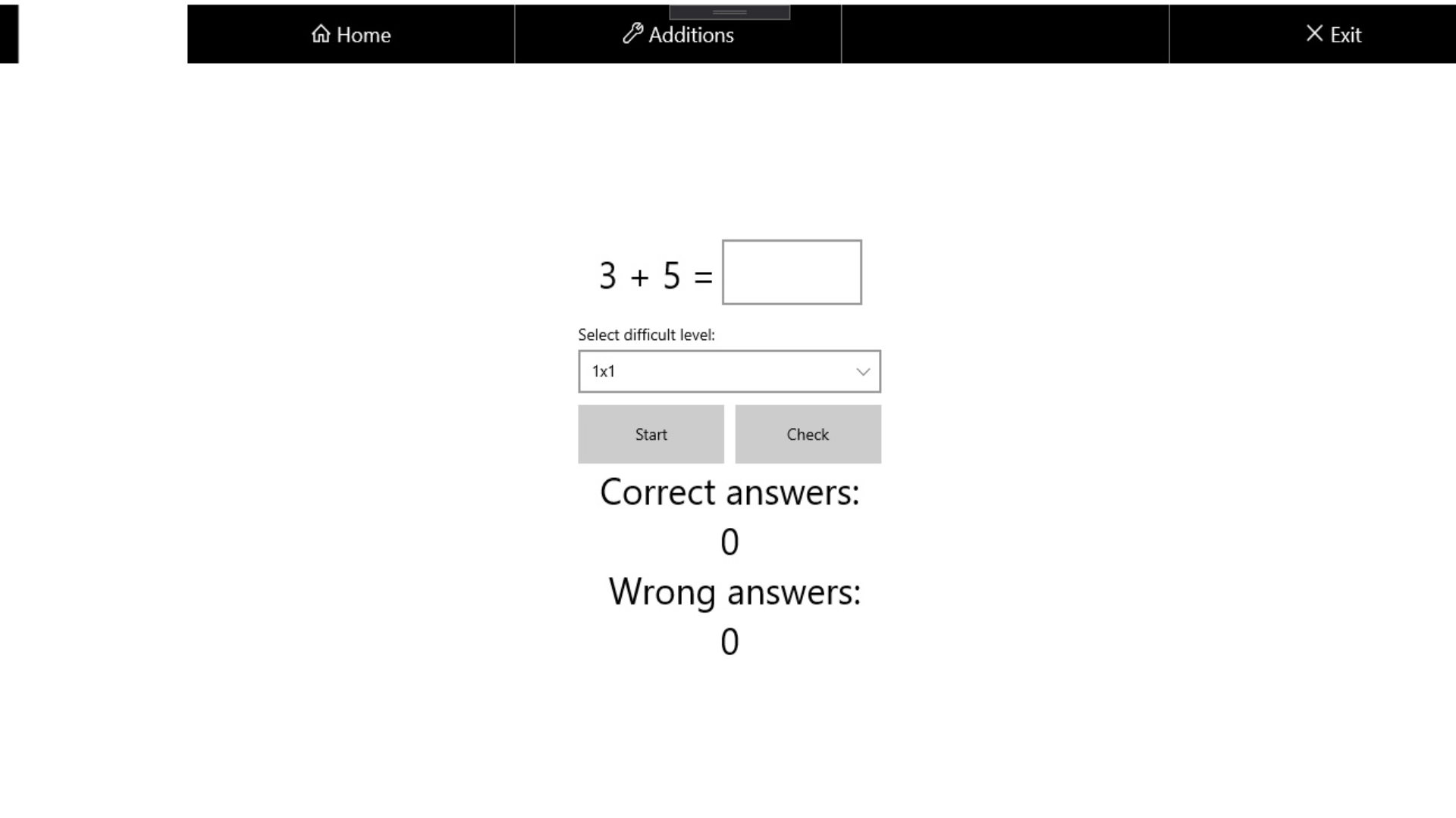 Convenient application interfaceRandom numbersValidation of answersSeparately located arithmetic operationsThree types of arithmetic operations (addition, difference and multiplication)The choice of the complexity of the tasks (three types)