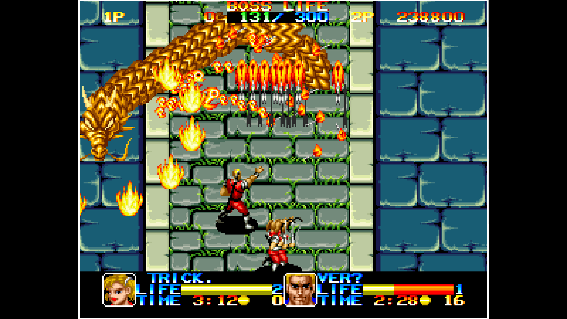 Fight to protect history from death merchants planning to bring chaos to the world. Shoot, use Ninja Tricks and Death Blows, and accumulate scrolls to perform Transformations for a variety of attacks. Two-player simultaneous play is also available.