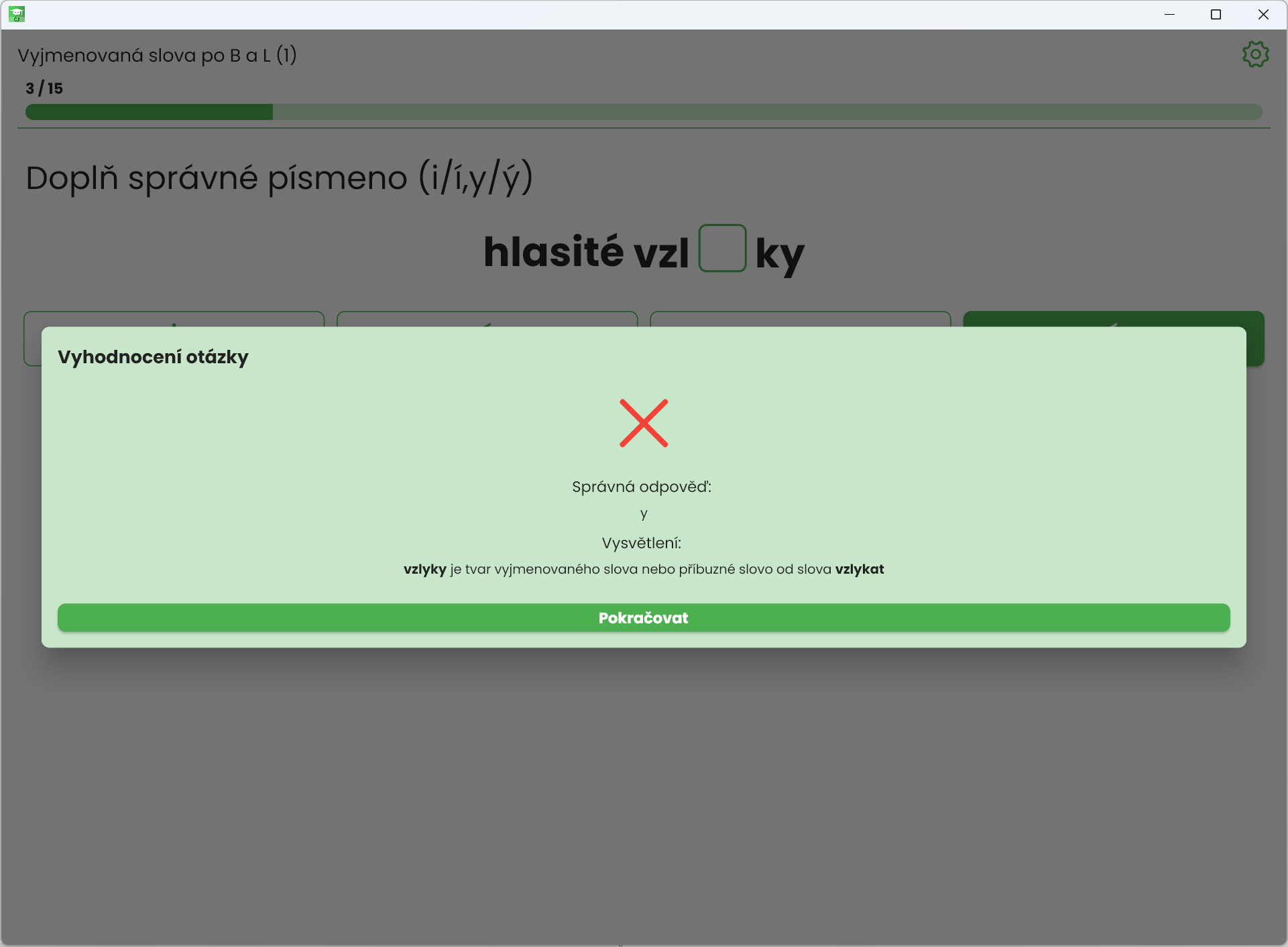 Důležitým prvkem naší aplikace je automatická korekce chyb. Díky tomu děti získají rychlou a efektivní zpětnou vazbu a okamžitě mohou opravit své chyby. Tím se zlepší jejich jazykové dovednosti a sebedůvěra při psaní a mluvení.