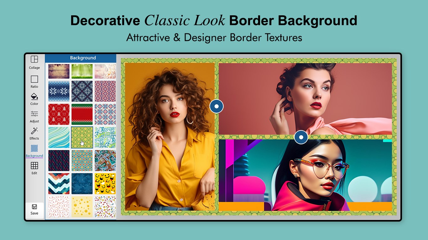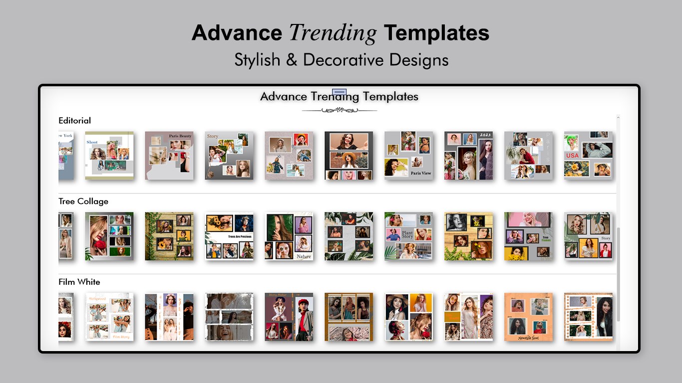 Photo Art Collage Maker is a tool for creating dynamic images according to your social media pages sizes and effective functionality adjustment, flip, rotate, texture backgrounds and more.